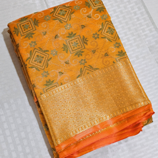 Elevate your festive style with this mustard yellow Pattu Silk Saree, featuring rich texture and elegant drape – perfect for weddings and celebrations. Comes with an attached blouse piece