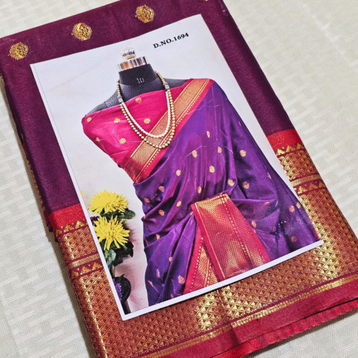 Regal Purple Pattu Silk Saree with Golden Red Border
