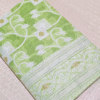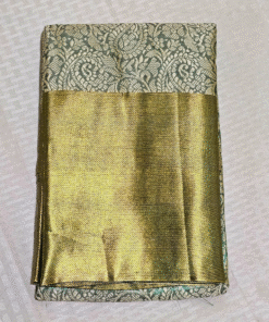 Crafted from premium-quality silk, this saree features a luxurious golden thick border that beautifully complements the vibrant green hue, exuding royal charm and festive allure.