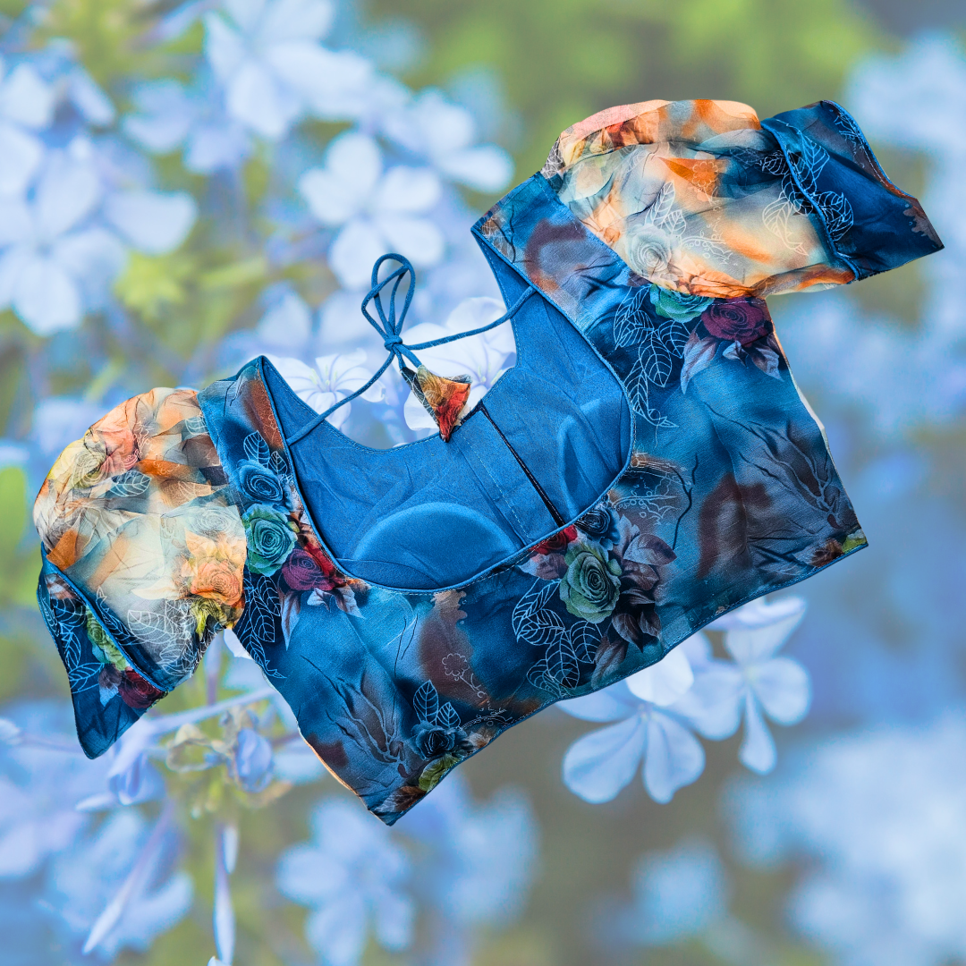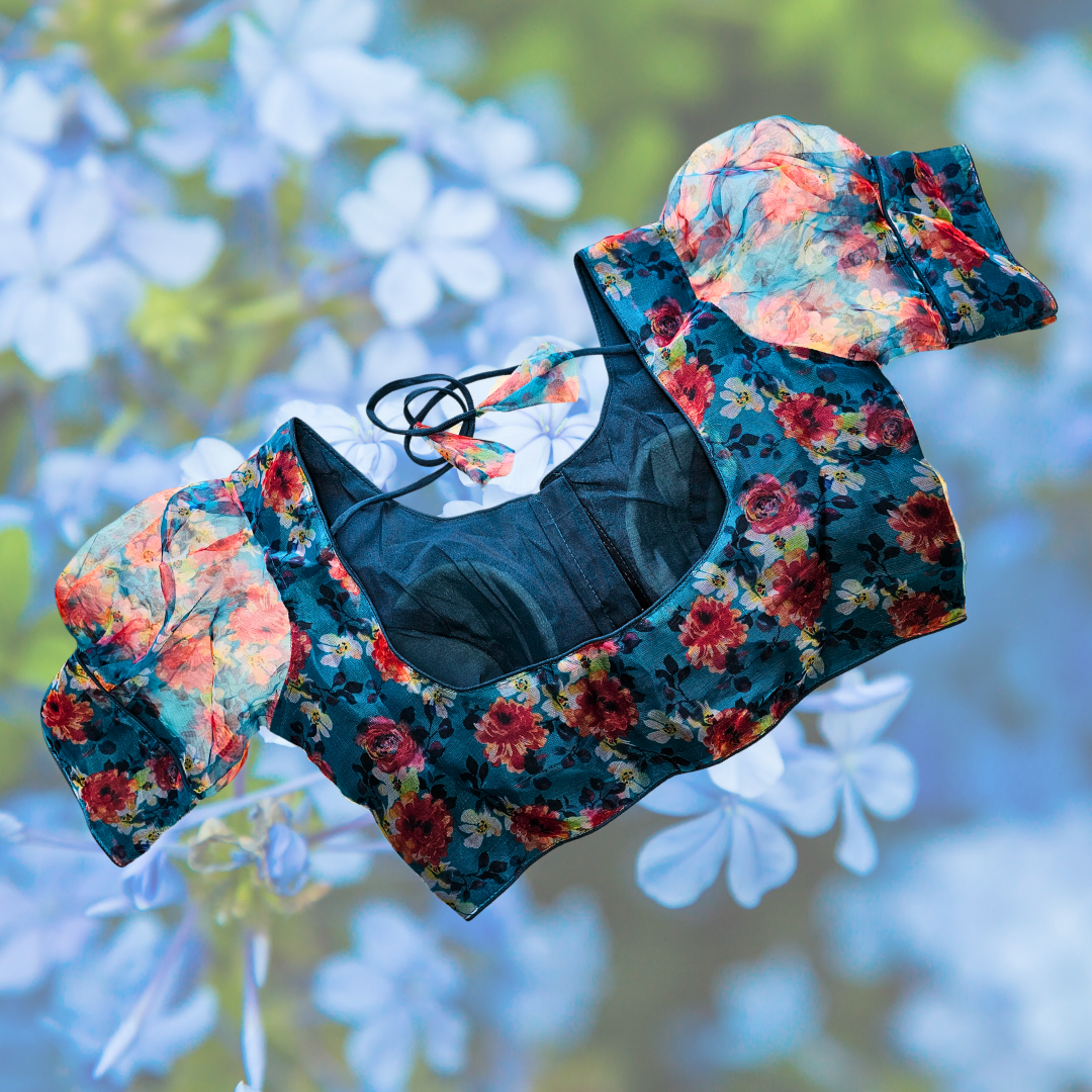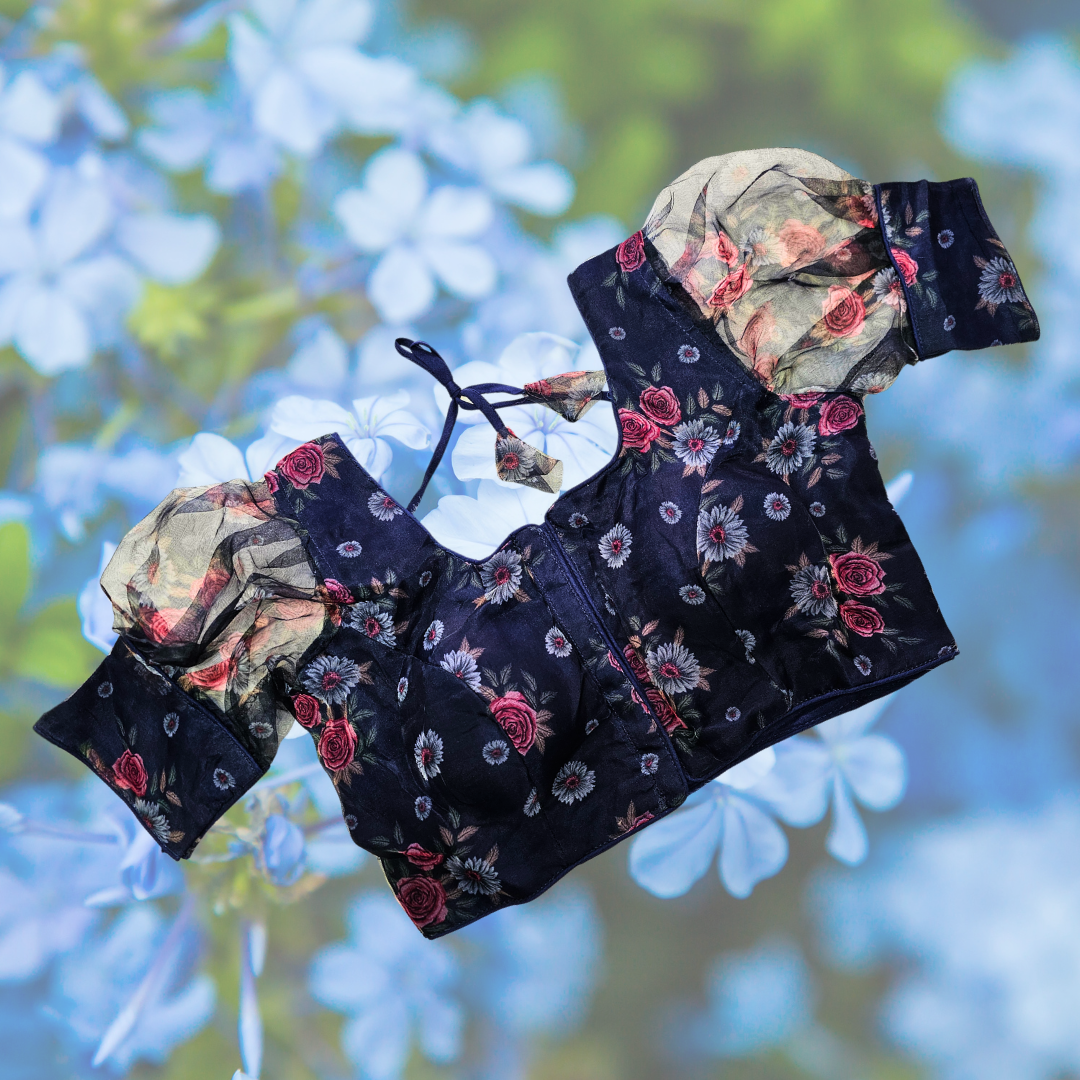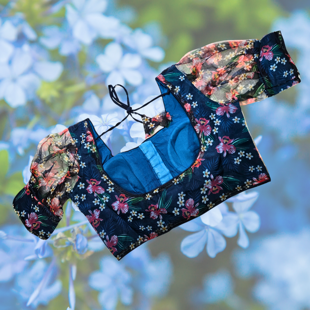 This blouse is handmade with attention to fine details, offering a perfect blend of comfort and sophistication. The front-open design with hook closure and structured padding makes it easy to wear and style, while the designer print and elegant sleeves make it ideal for partywear and festival wear.