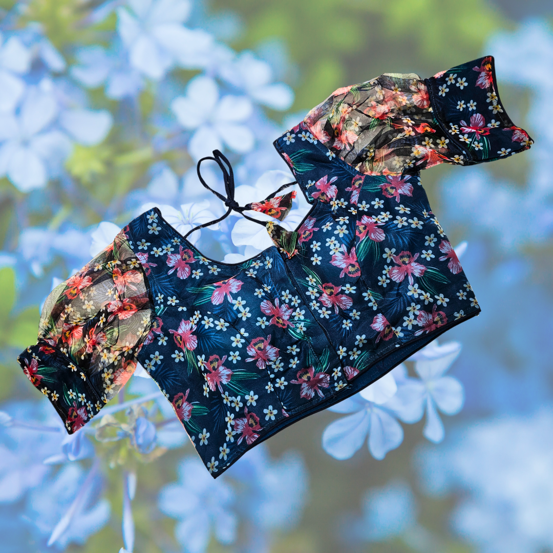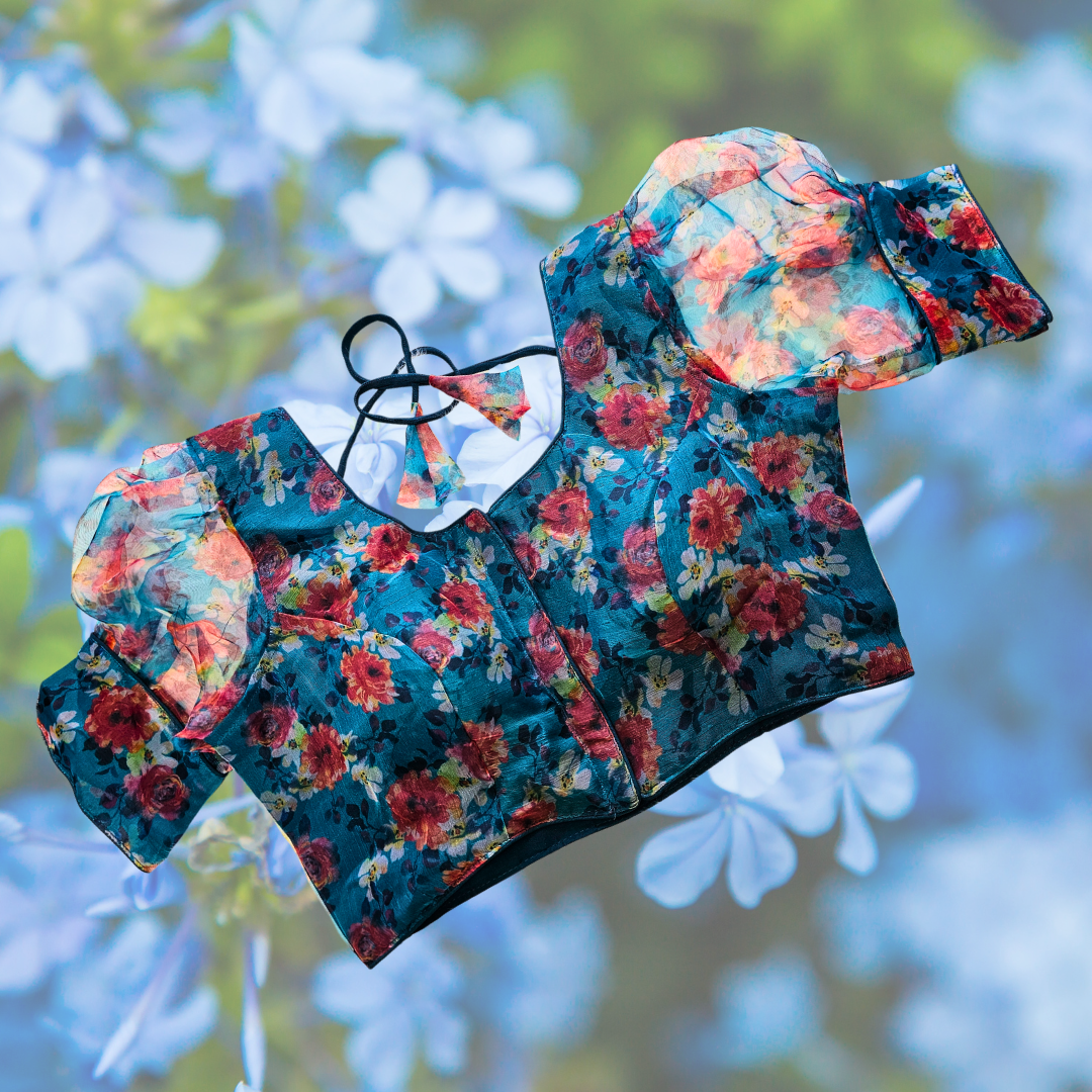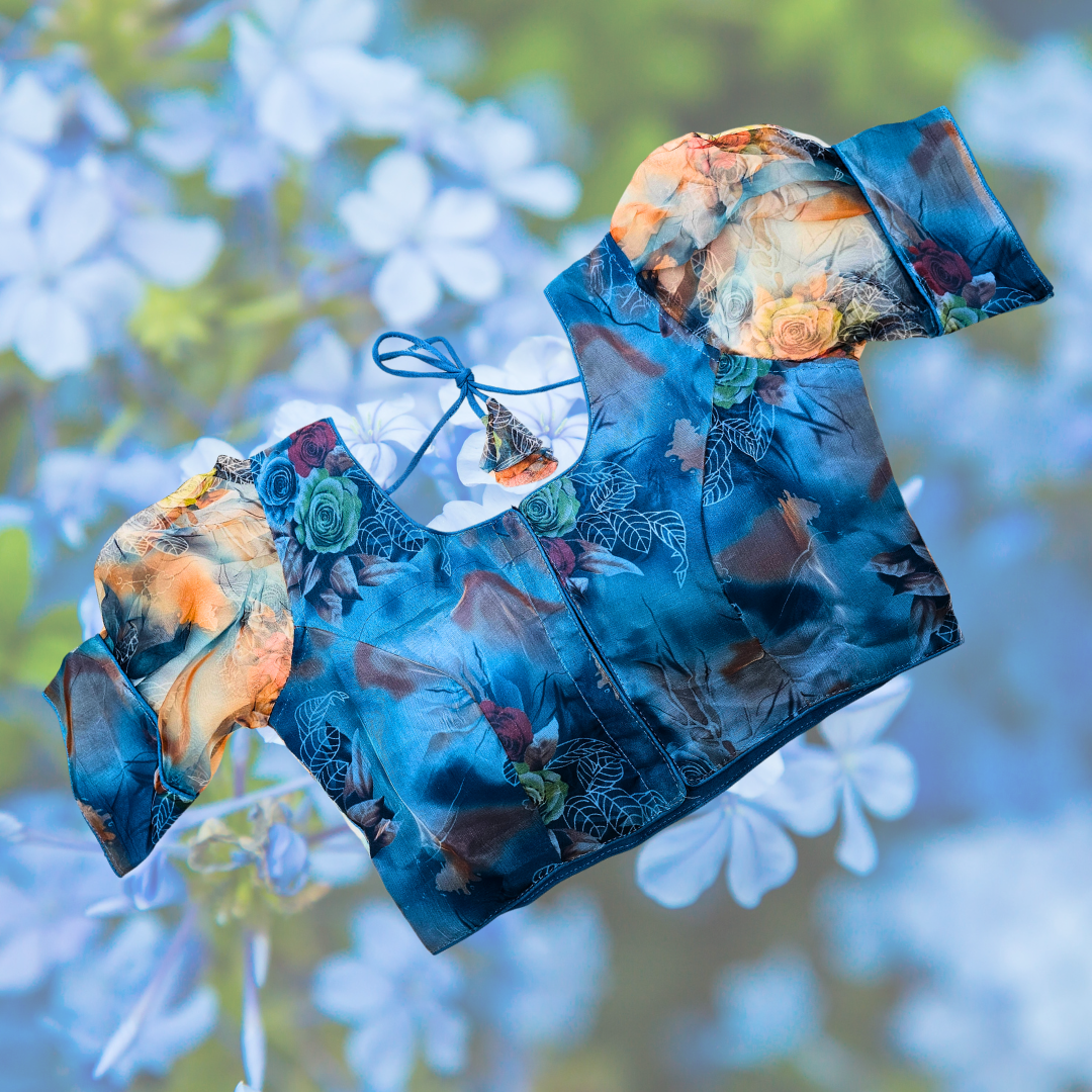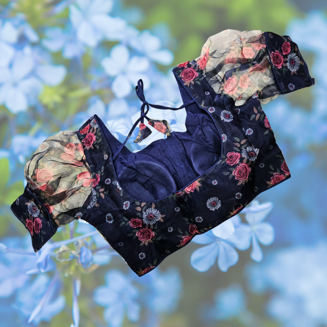 Elevate your ethnic wardrobe with this stunning designer festival wear blouse, crafted from high-quality organza fabric for a rich, festive look. This ready-to-wear blouse is tailored to a 38-inch bust size, with extra seam allowance on both sides, allowing easy alterations up to 40 inches for a personalized fit. Available in Four patterns.