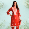 Set against earthy tones, this outfit is perfect for daytime celebrations, festive gatherings, or graceful everyday wear.