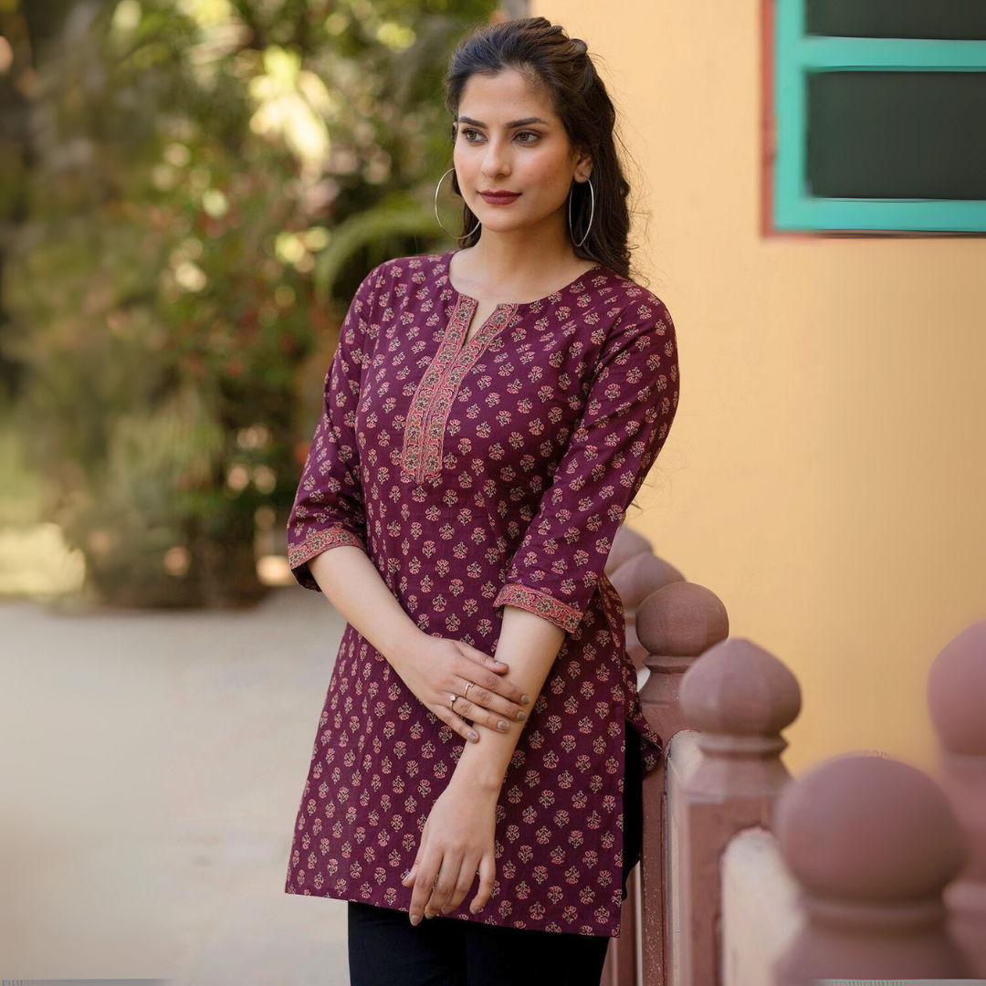 Cotton Printed Tops – MAROON