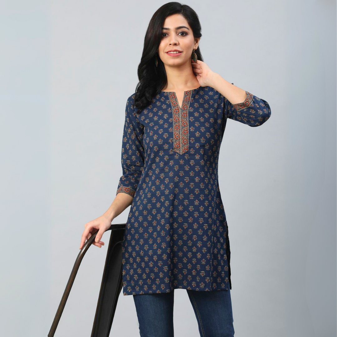 Cotton Printed Tops – BLUE