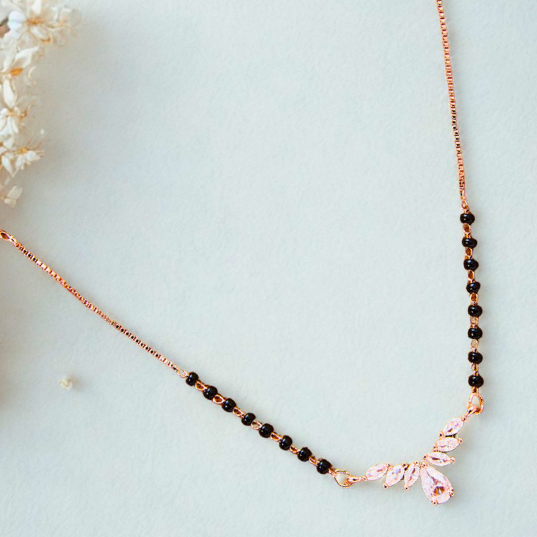 Cubic Zirconia Tanmaniya Mangalsutra with Rose Gold Plating