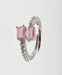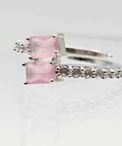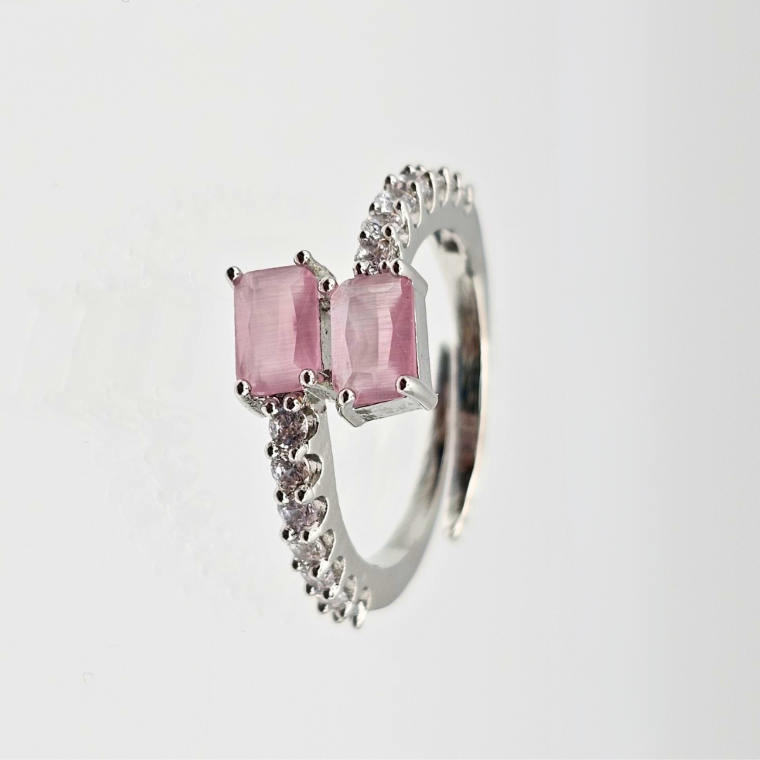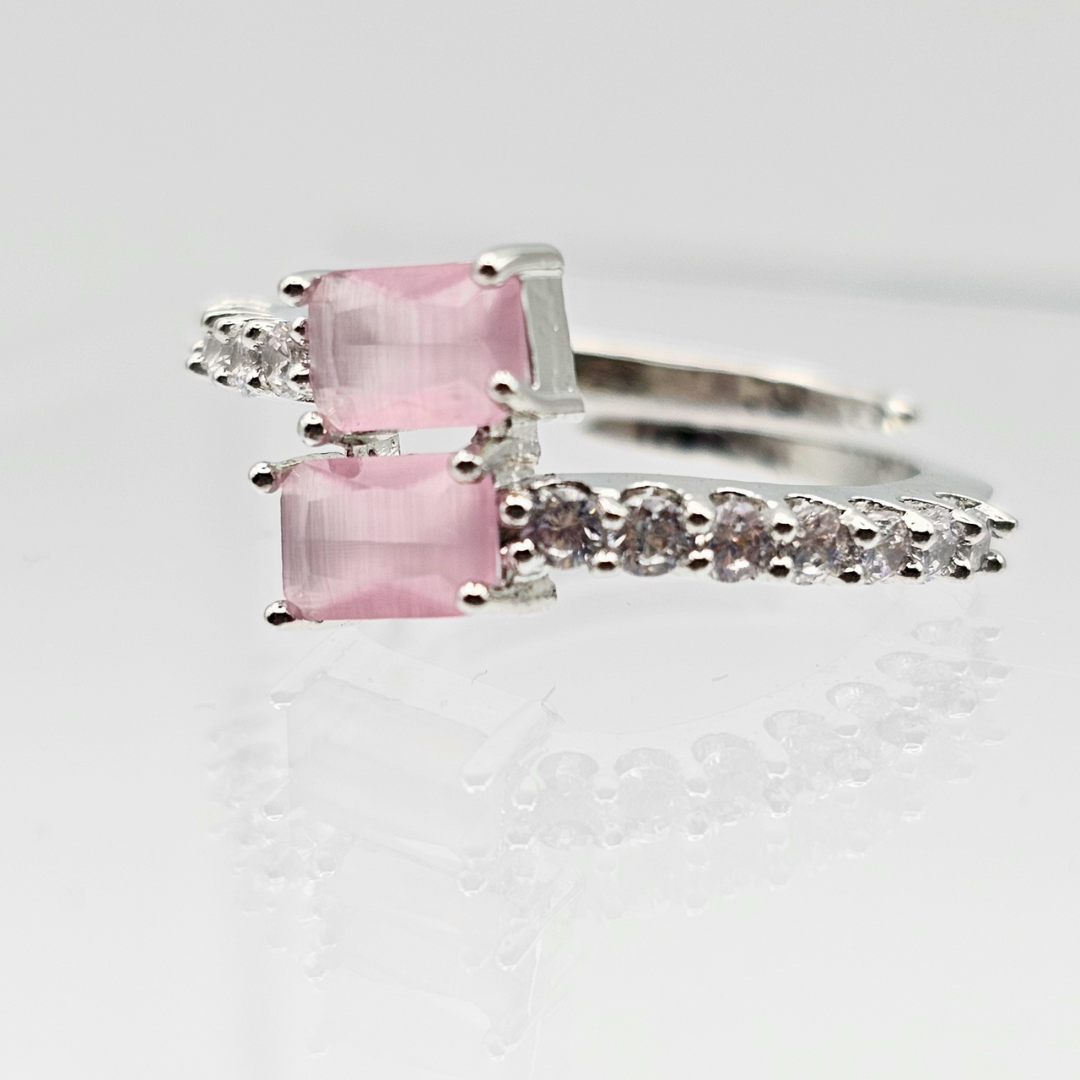 CZ Delicate Adjustable Ring with Rhodium Plating – PINK