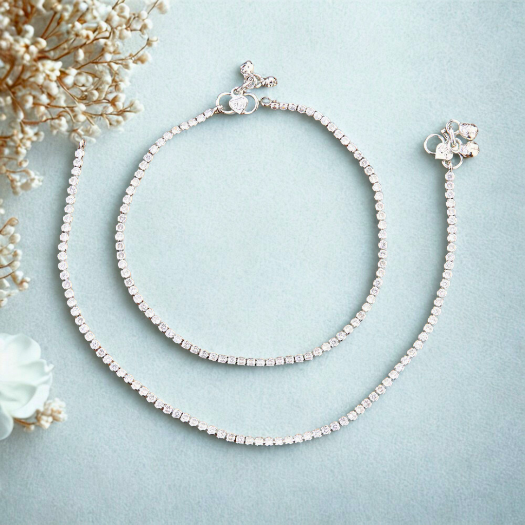 CZ Delicate Payal | American Diamond Openable Anklet