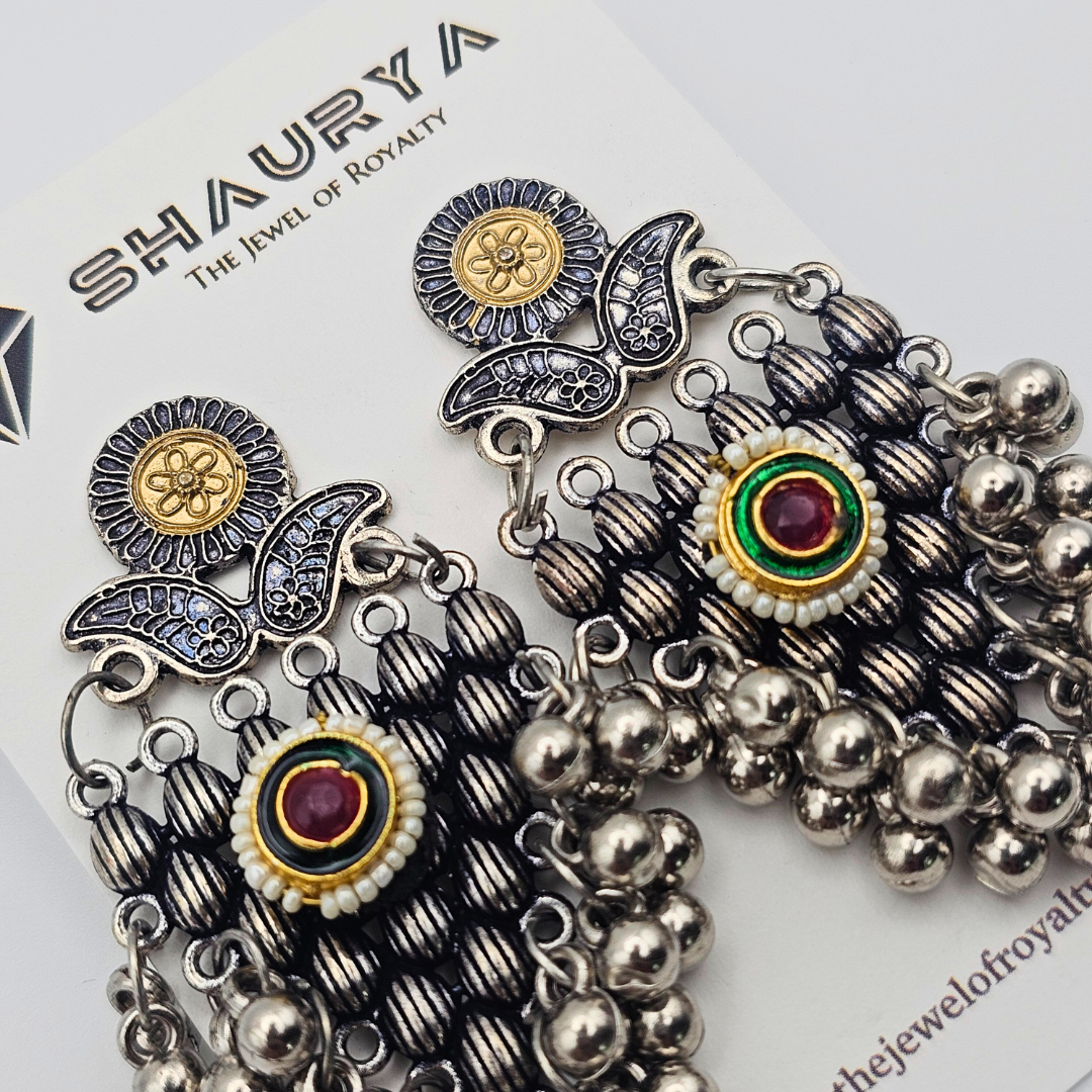 Dual-Tone Oxidized Silver Jhumka Earrings