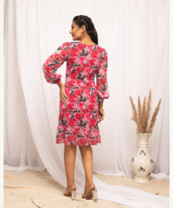 Elevate your fashion game with this stunning pink western dress, beautifully decorated with vibrant red floral prints that bring a fresh, romantic vibe to your wardrobe. Made from premium, lightweight georgette fabric paired with a smooth crepe lining, this dress promises breathable comfort, soft texture, and a flattering drape that moves effortlessly with you.