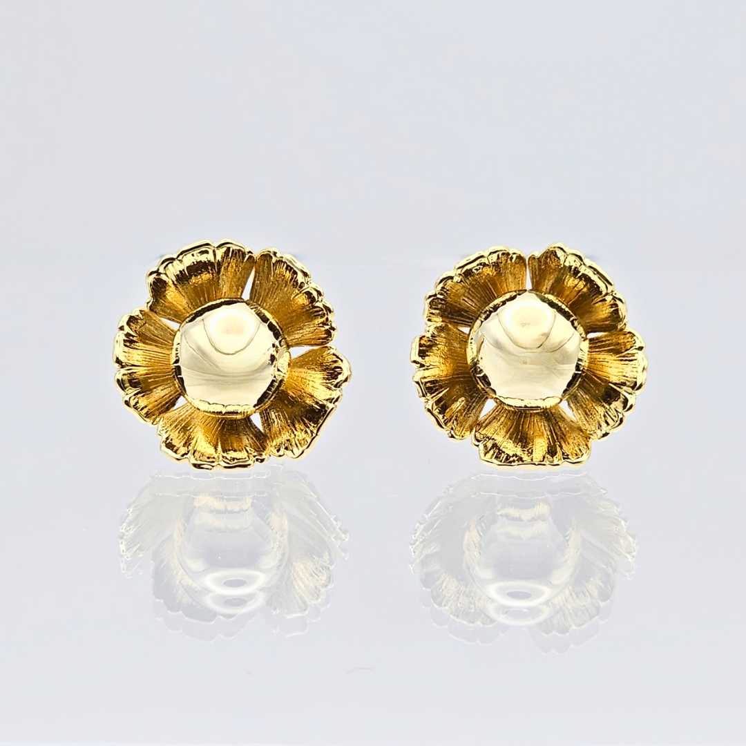• Elegant flower-shaped gold studs