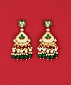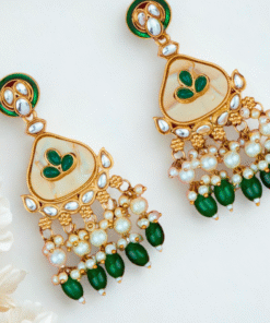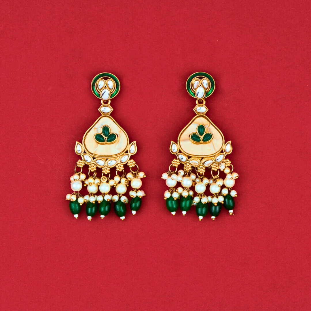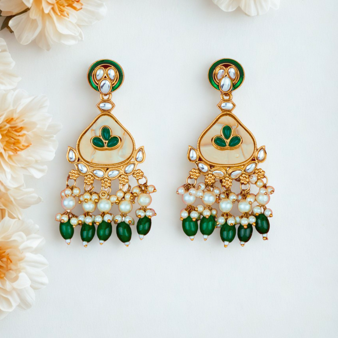 Indo Western Mother of Pearl Earrings with Mehndi Plating – GREEN