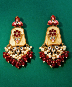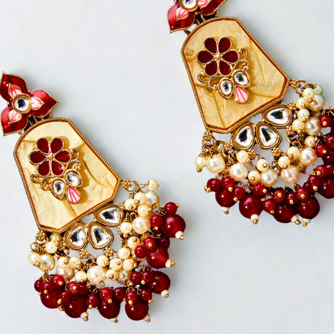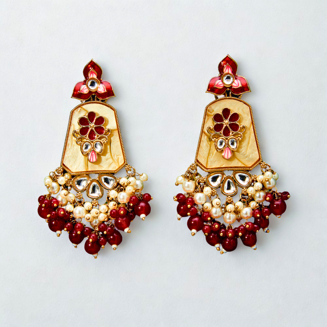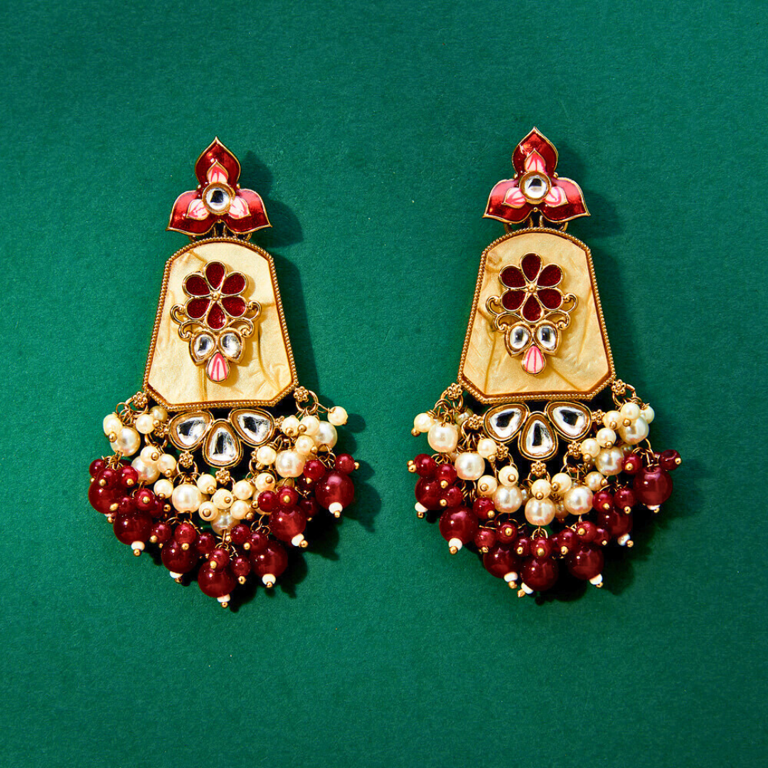 Indo Western Mother of Pearl Earrings with Mehndi Plating – MAROON