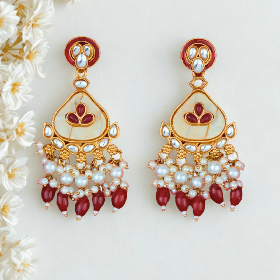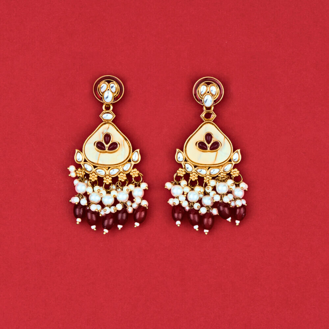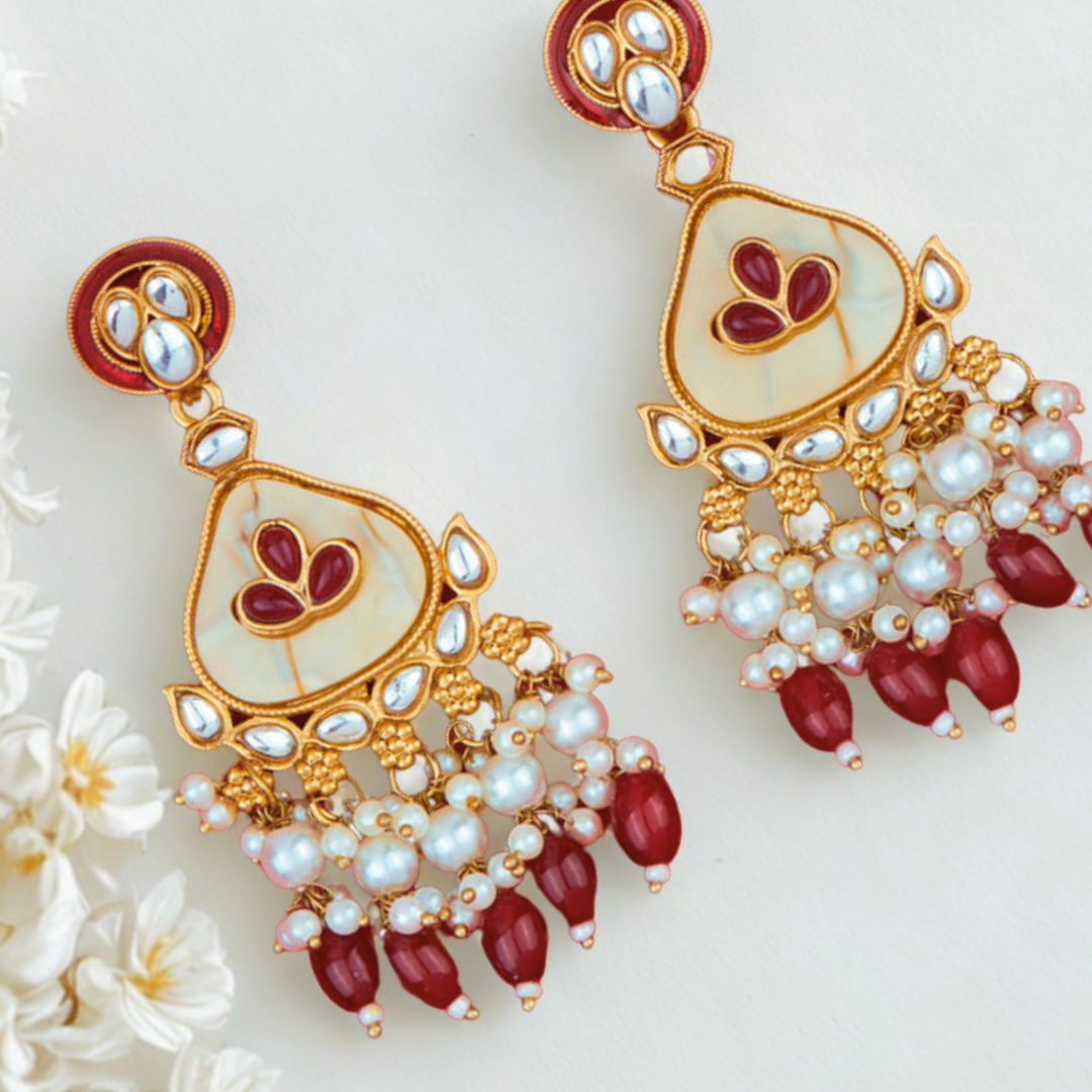 Indo Western Mother of Pearl Earrings with Mehndi Plating – MAROON