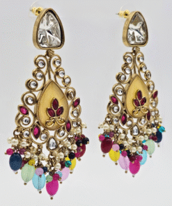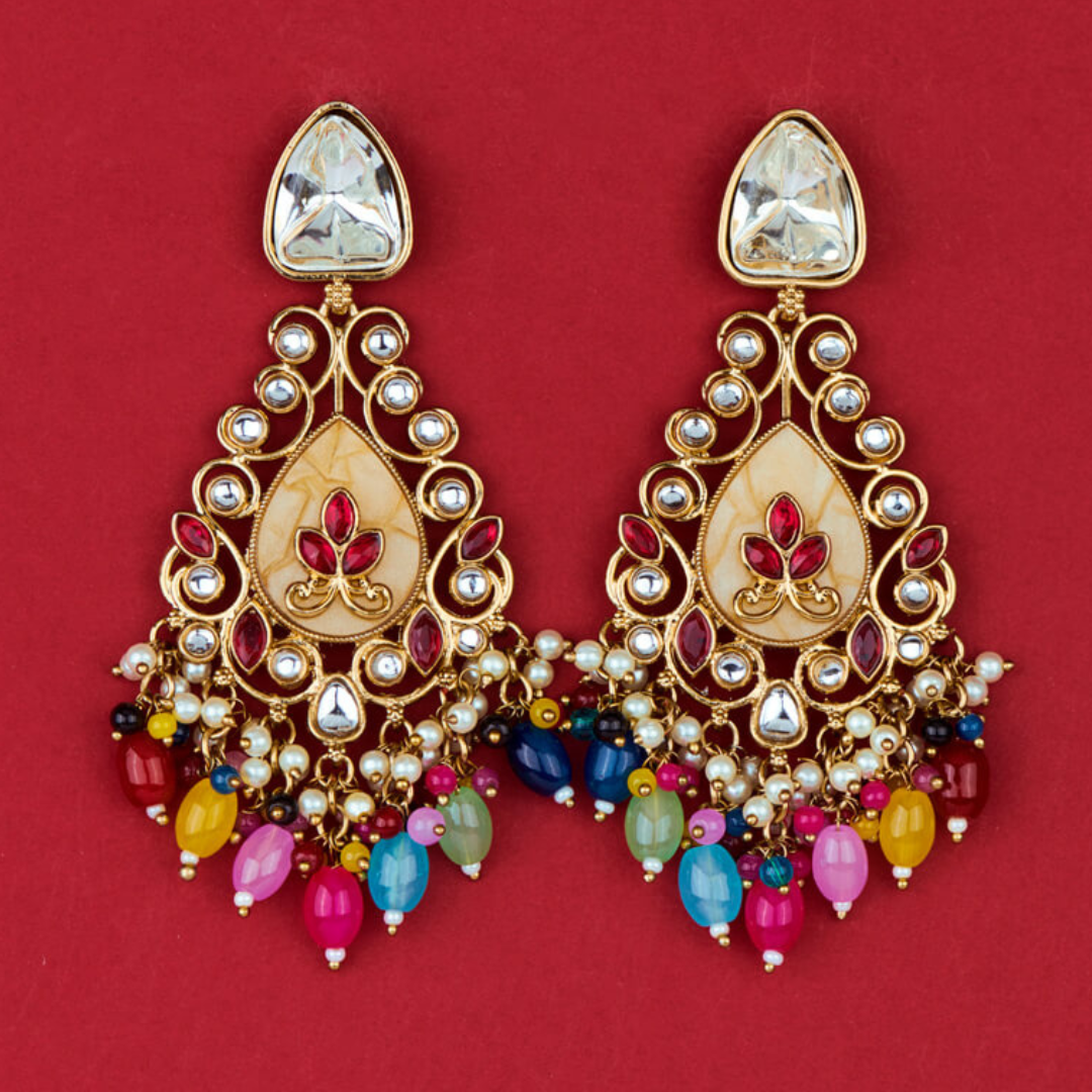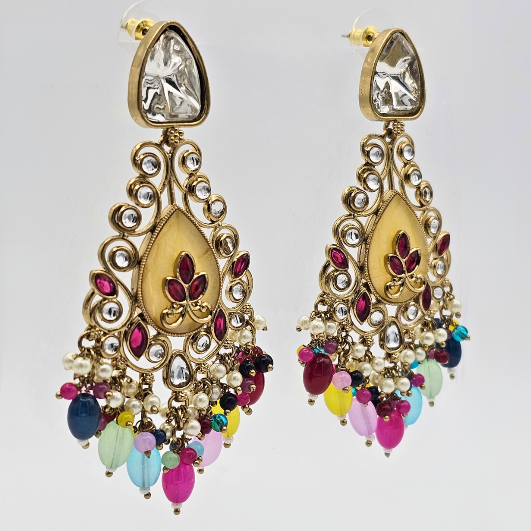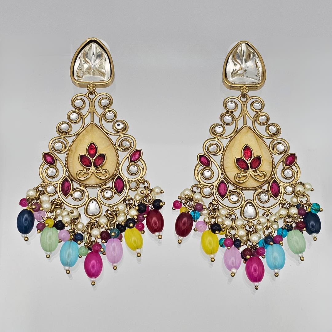 Indo-Western Mother of Pearl Earrings with Mehndi Plating – MULTI