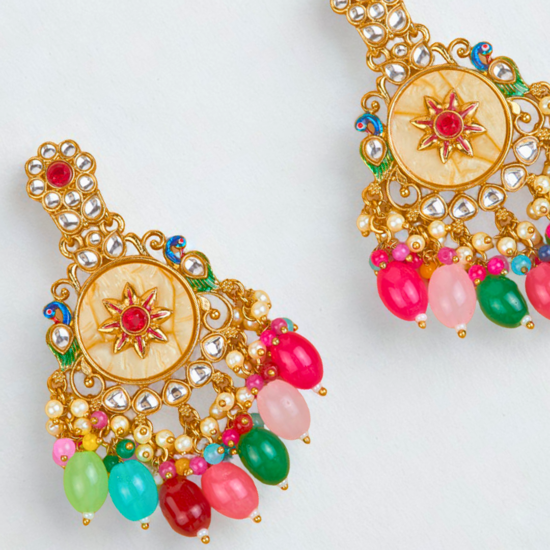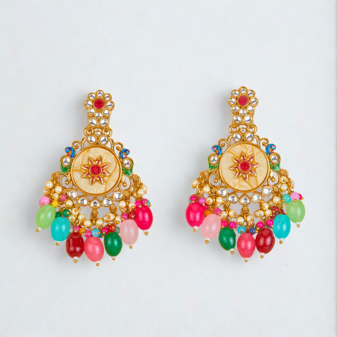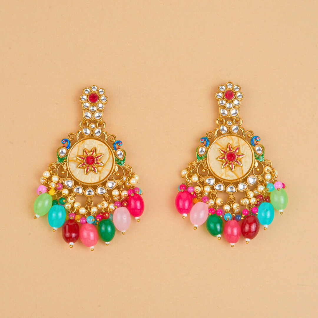 Indo Western Mother of Pearl Earrings with Mehndi Plating – MULTICOLOR