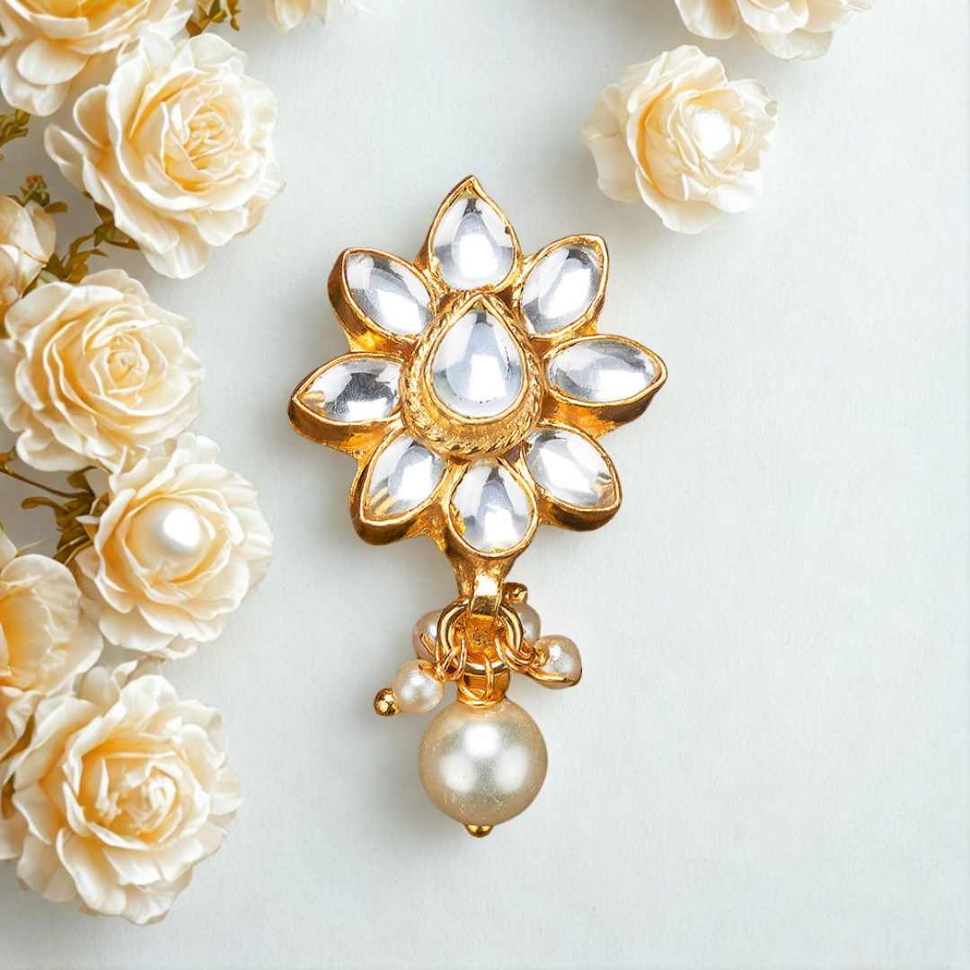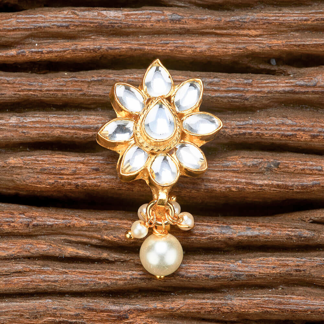 Kundan Pressing Nose Ring with Gold Plating – WHITE