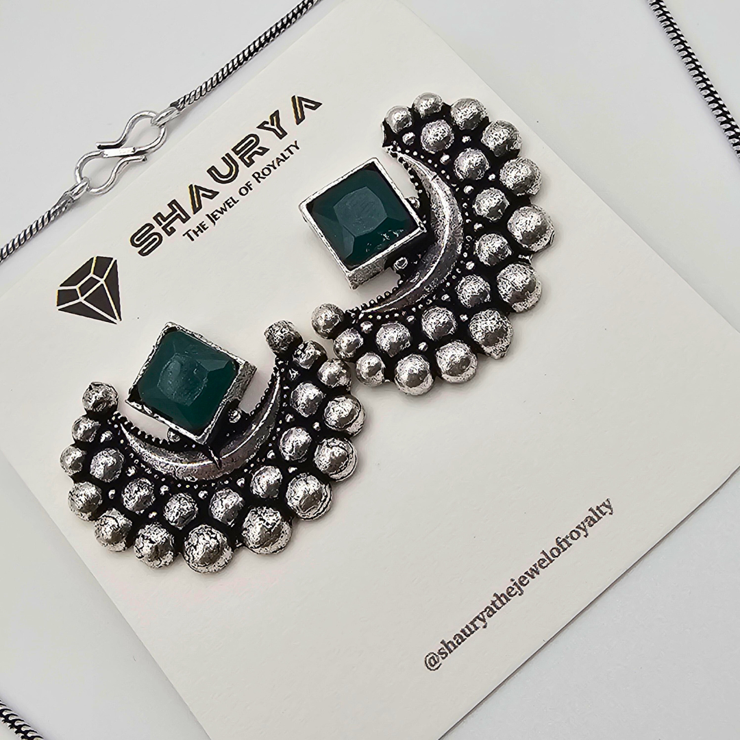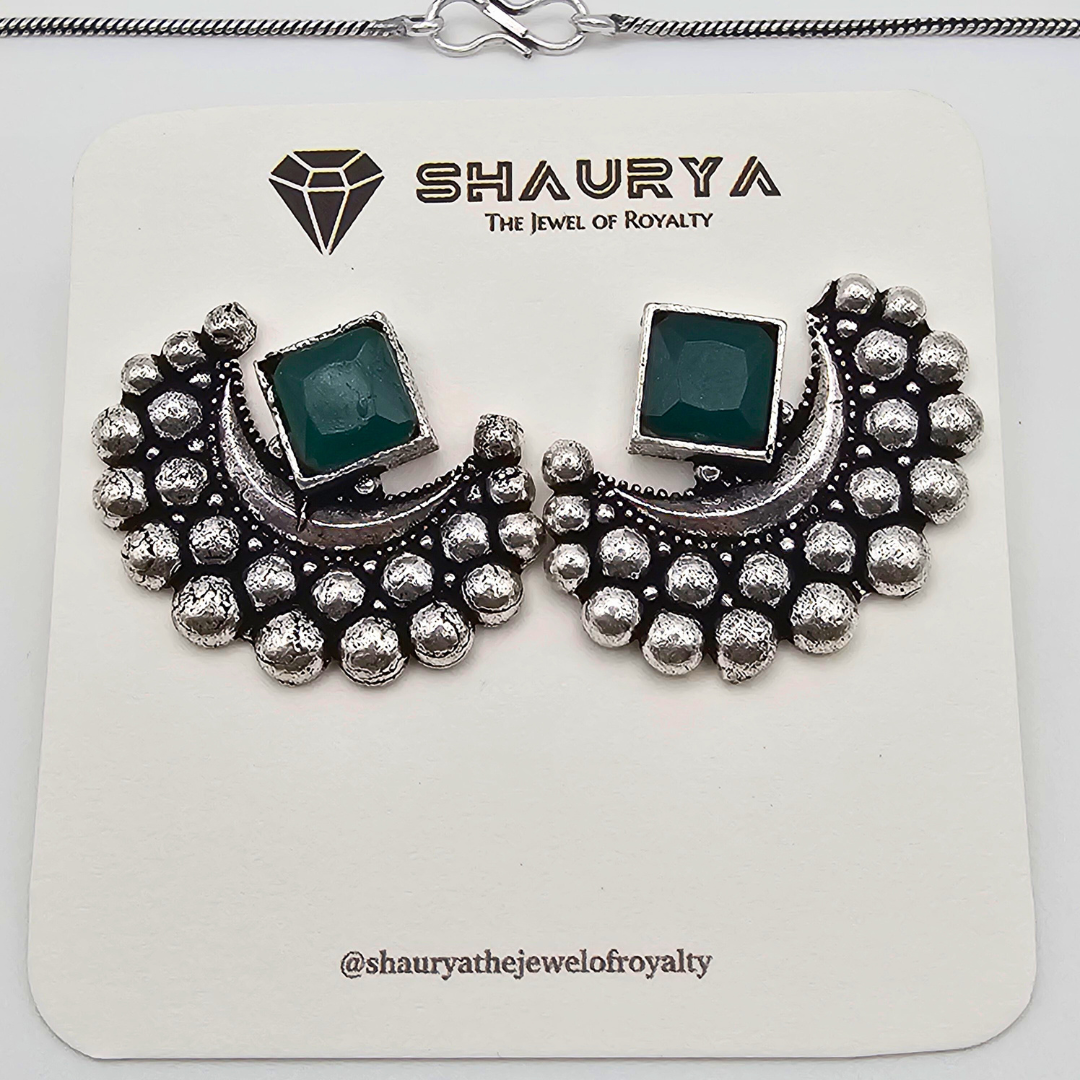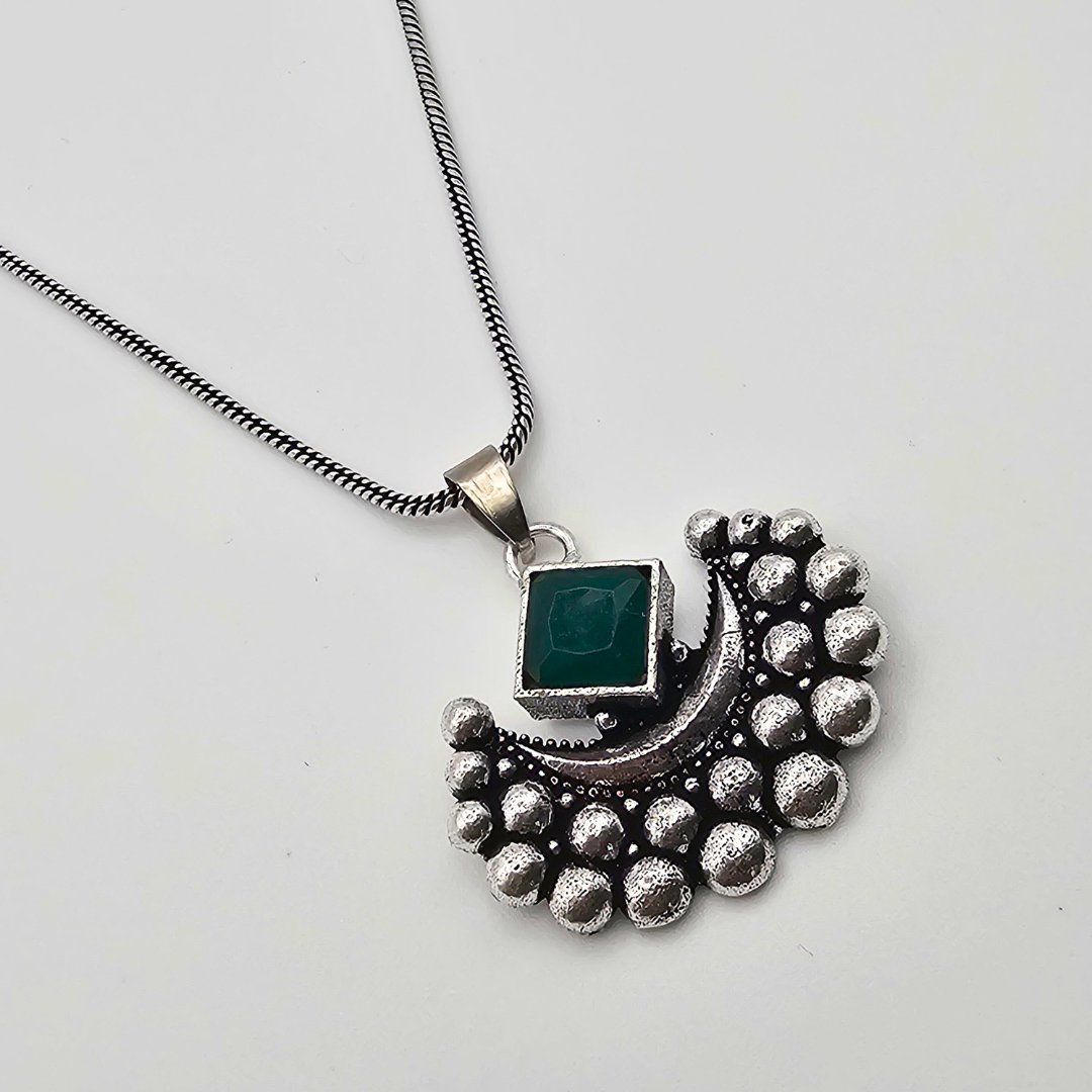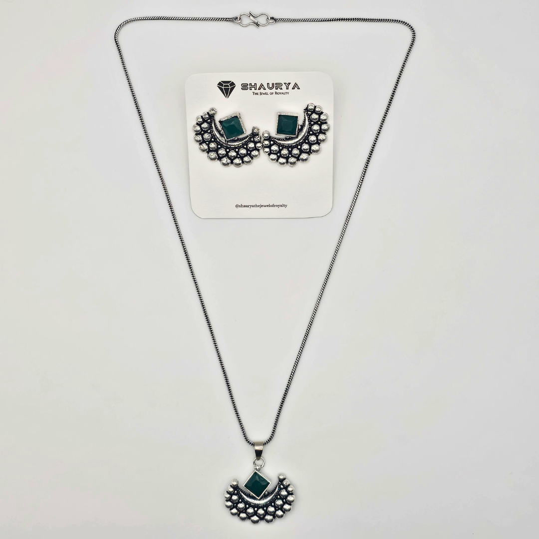 LunaMyst Oxidized Silver Crescent Moon Necklace Set – GREEN
