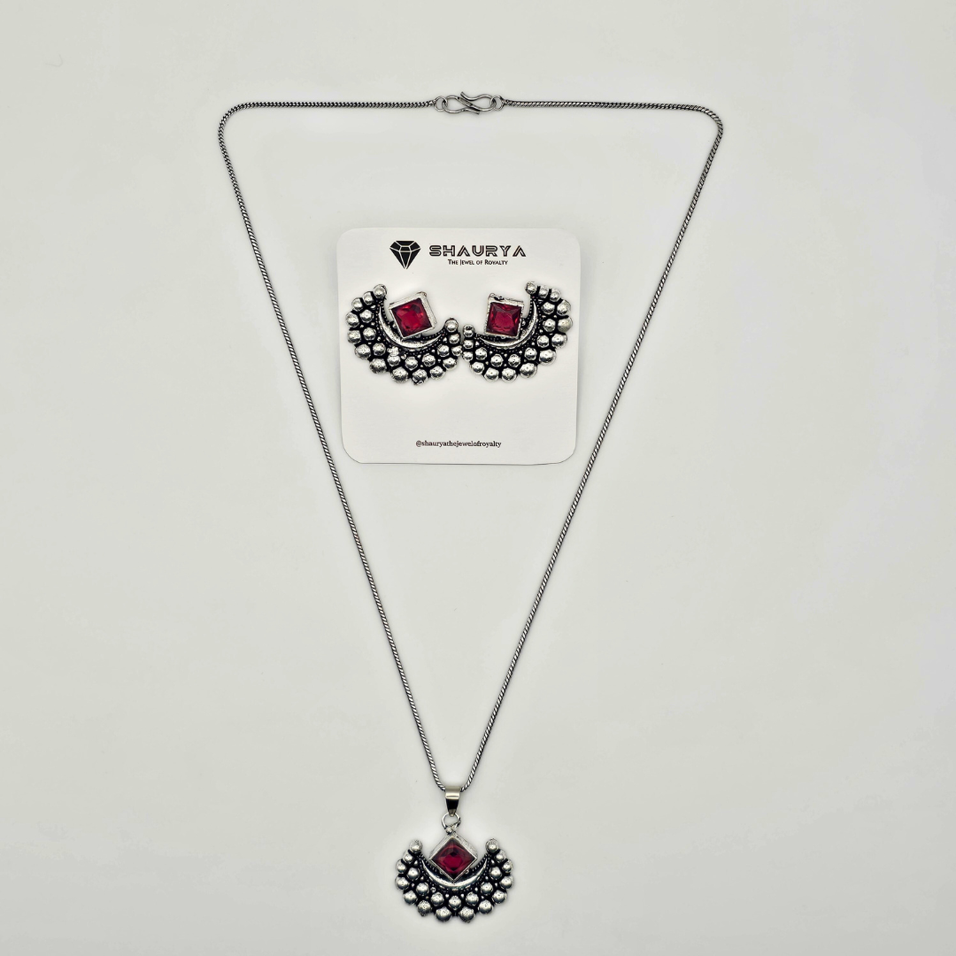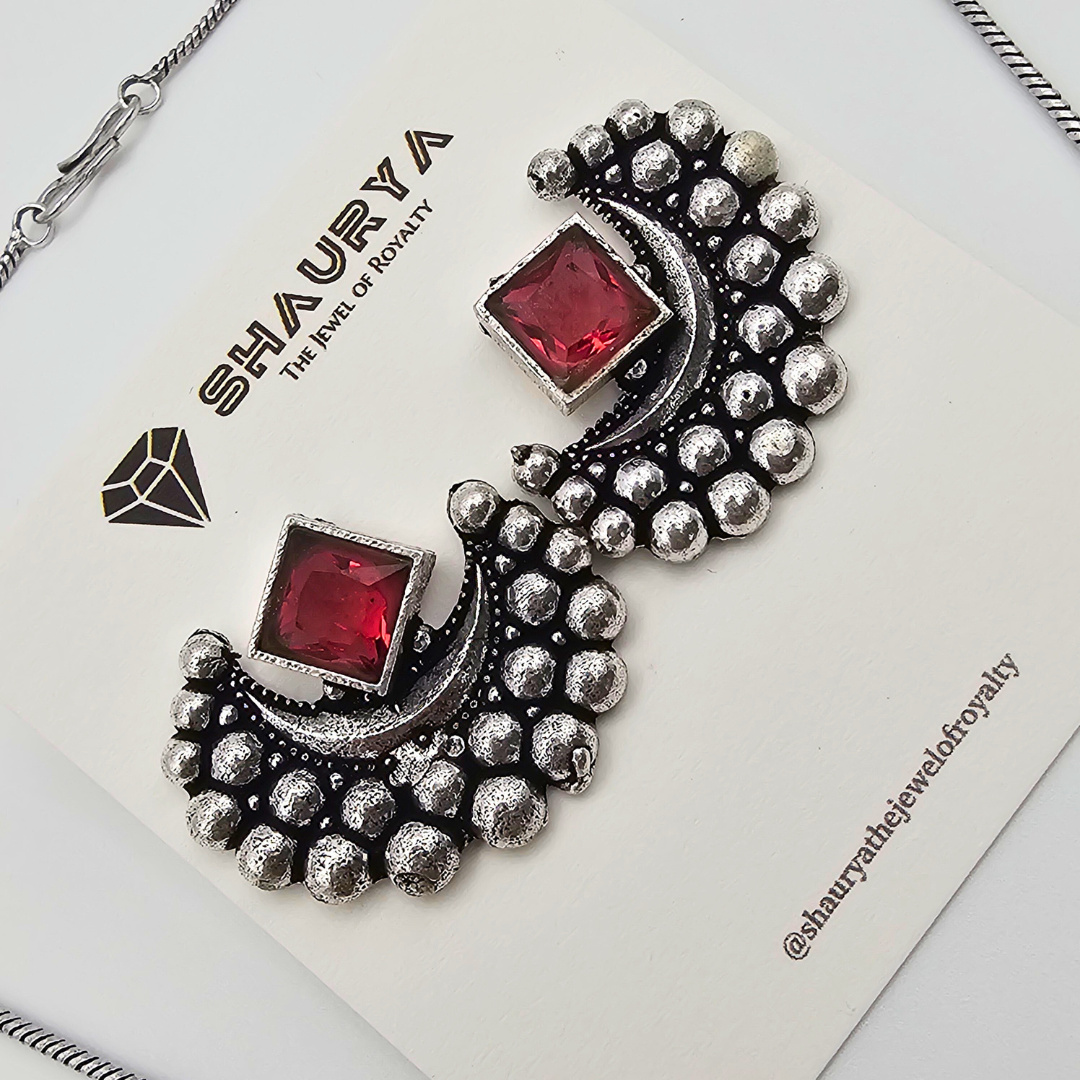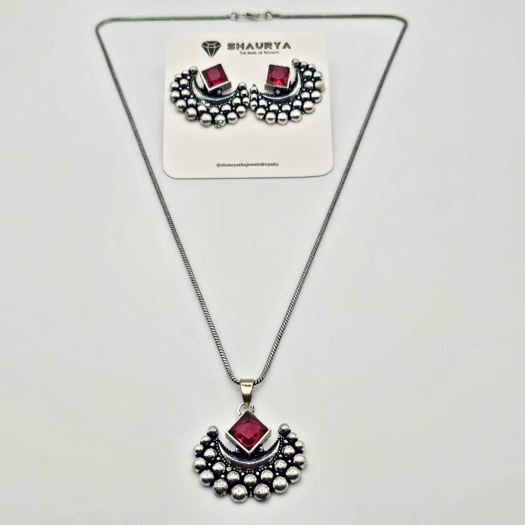 LunaMyst Oxidized Silver Crescent Moon Necklace Set – RED
