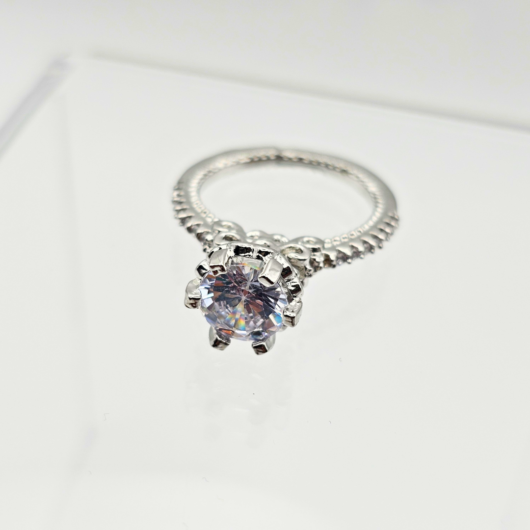LustraSilver Adjustable American Diamond Ring – Size 7