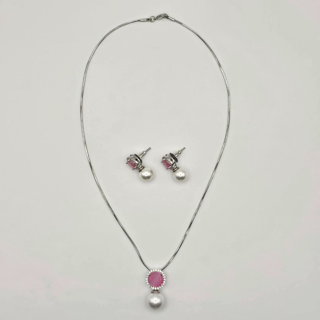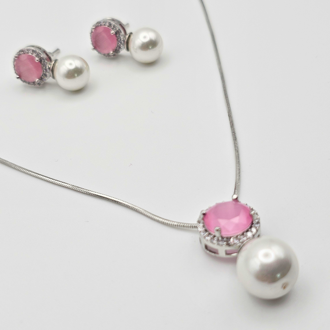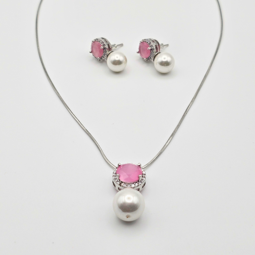 Add a touch of graceful charm to your jewelry collection with the Pink Glow CZ Delicate Pendant Set, beautifully designed with premium American Diamonds and finished with high-quality Rhodium plating.