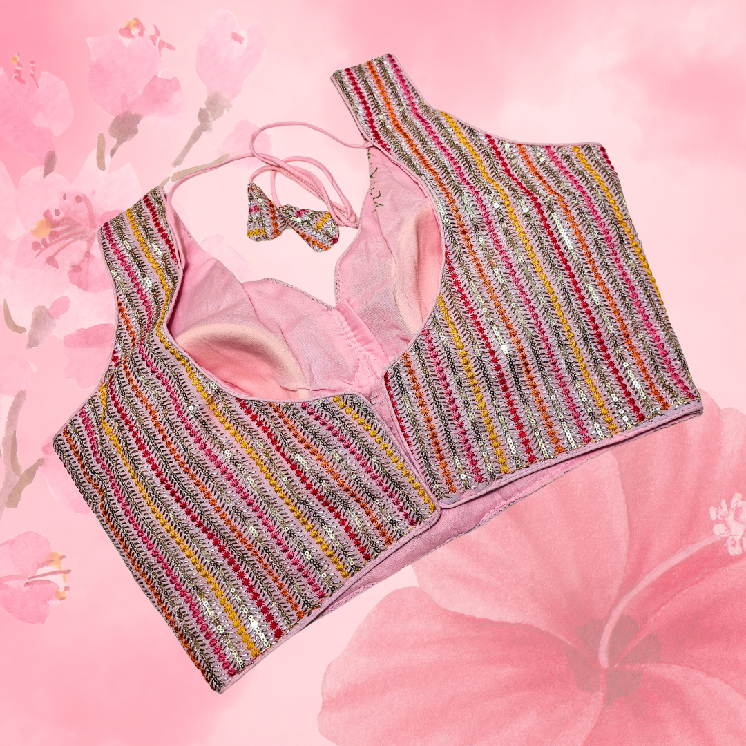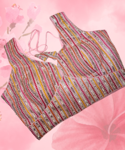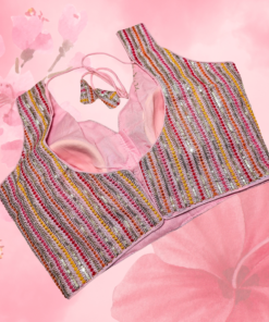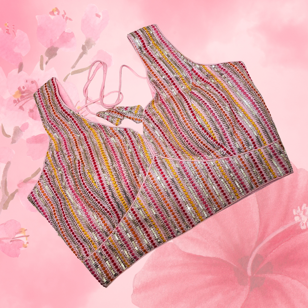 Pink Multithread Partywear Sweetheart Neck Blouse