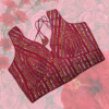Turn heads with this exquisitely crafted ready-to-wear blouse, tailored to a 38-inch bust size with an additional 1-inch margin on each side, allowing alteration up to 40 inches for a customized fit. The blouse opens from the back, showcasing a stylish open-back design with decorative latkans, making it perfect for weddings, receptions, and festive occasions. A luxurious piece to elevate your ethnic wardrobe!