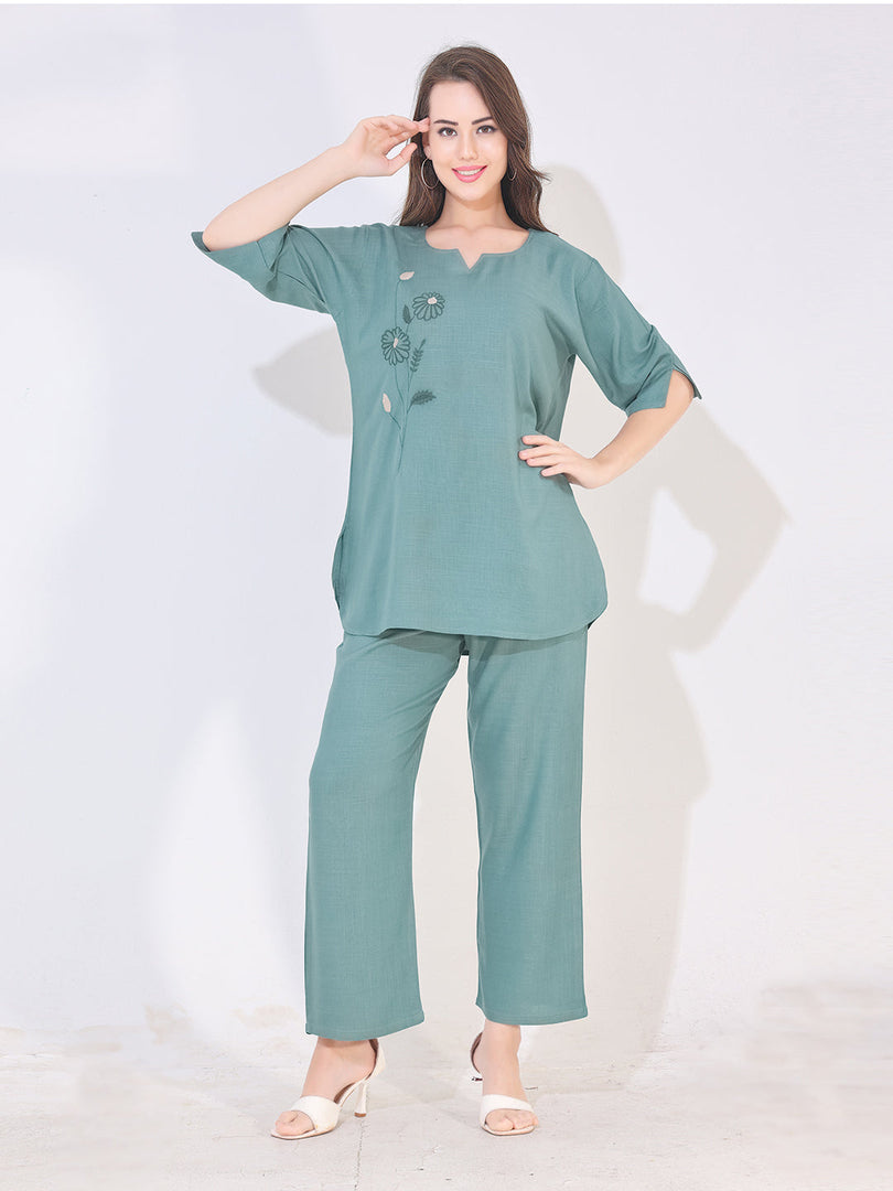Premium Soft-Touch Linen Co-Ord Set – Pine Green