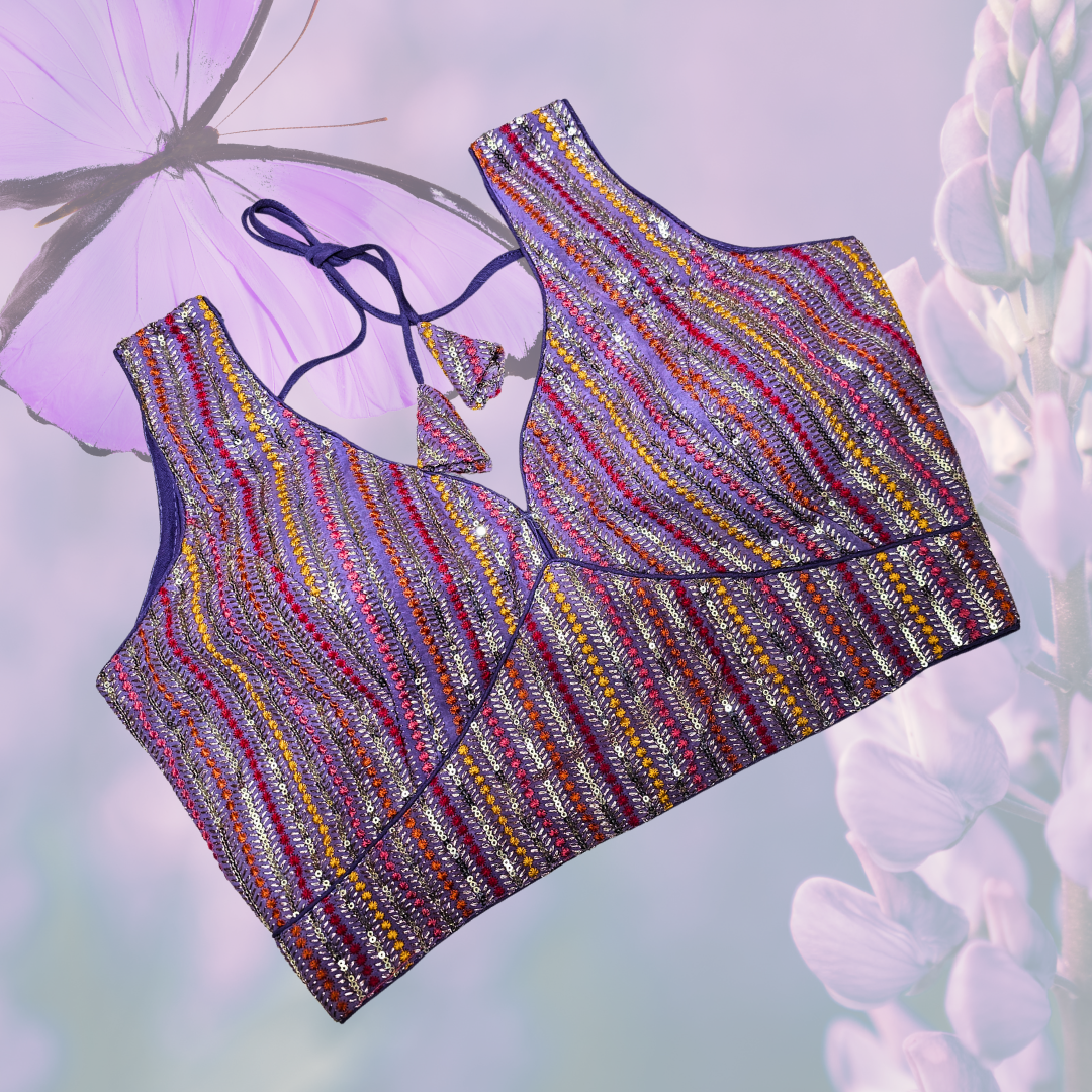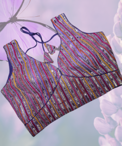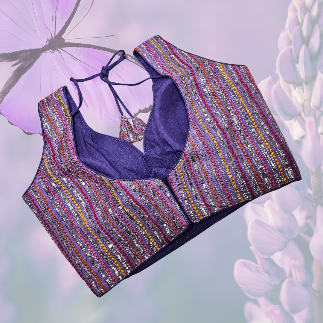 Purple Multithread Partywear Sweetheart Neck Blouse