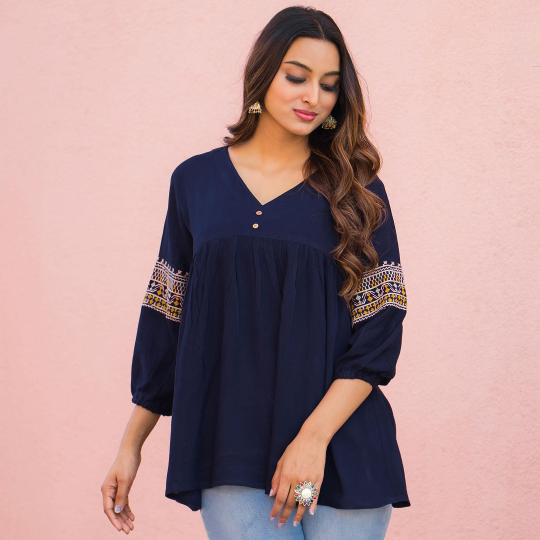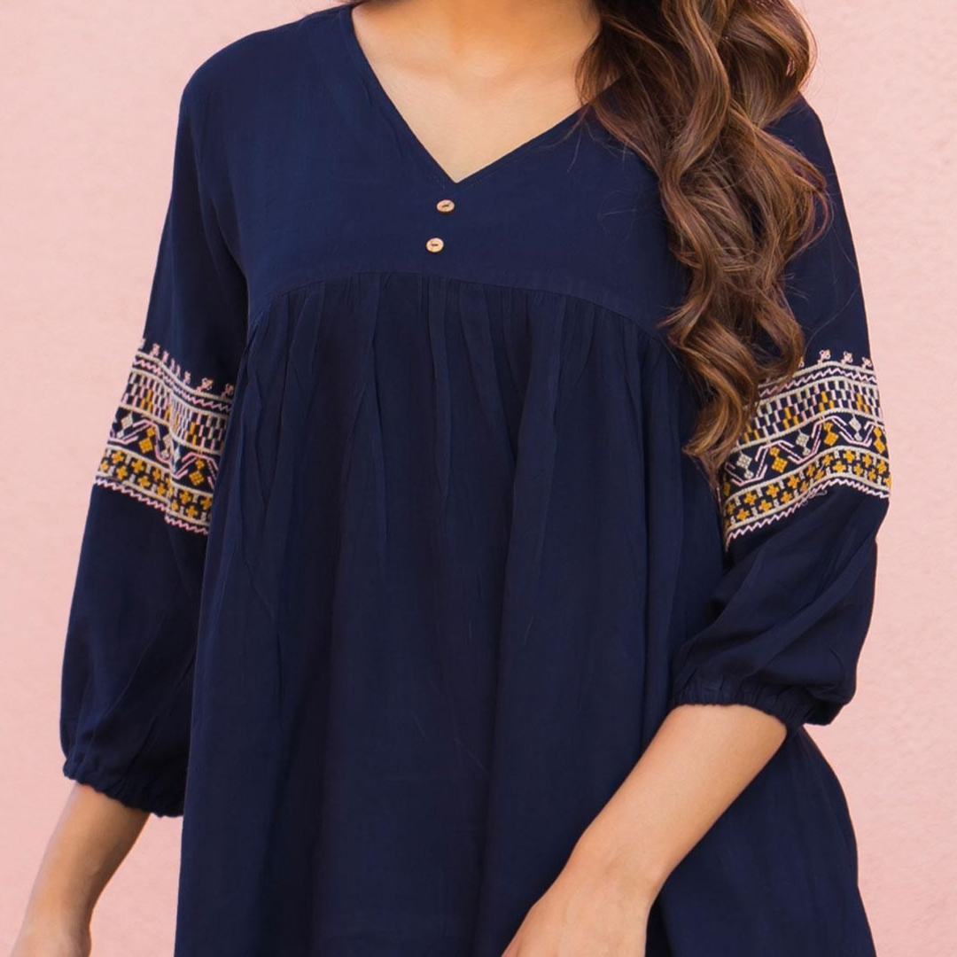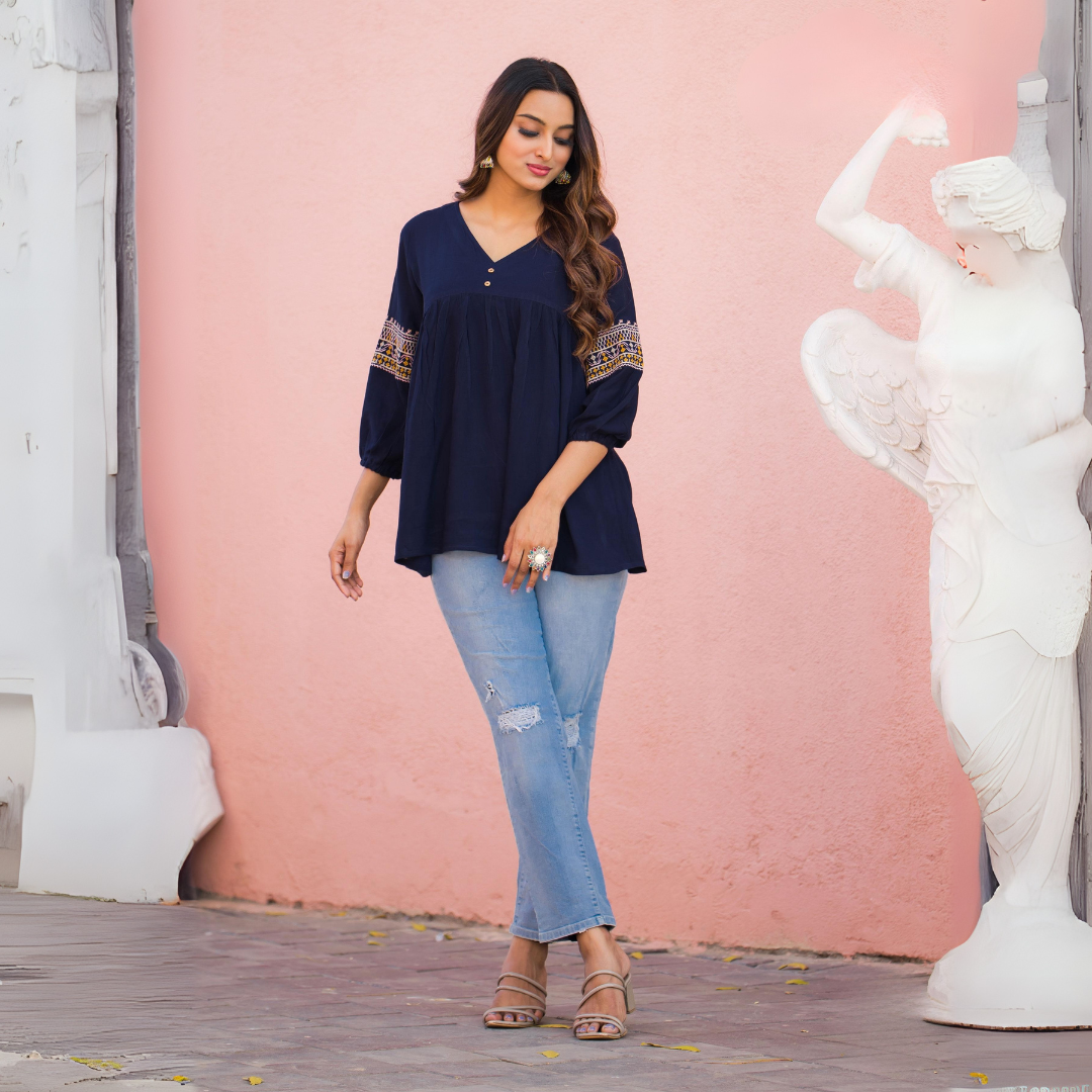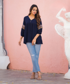 Rayon Wrinkle Printed Top – ROYAL BLUE