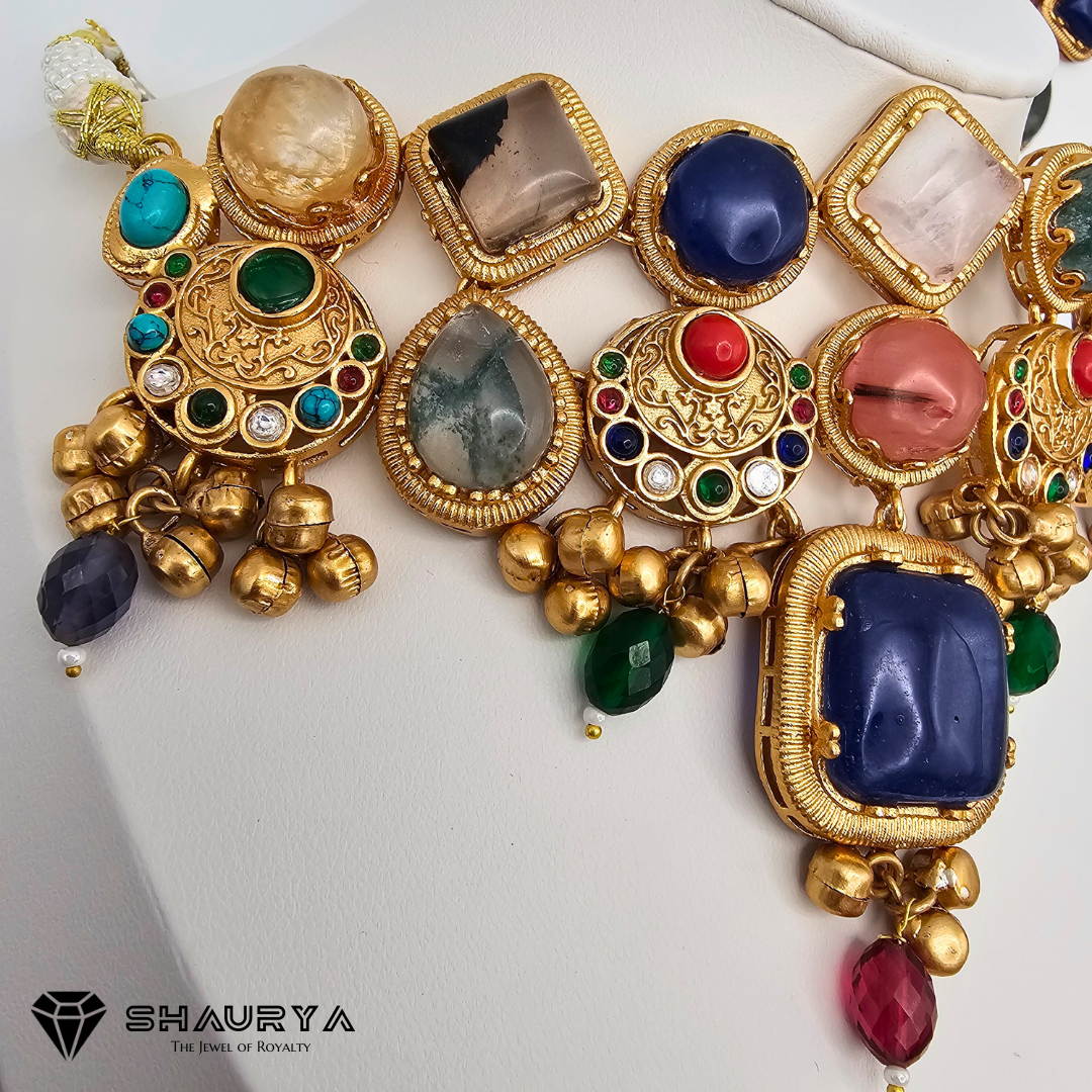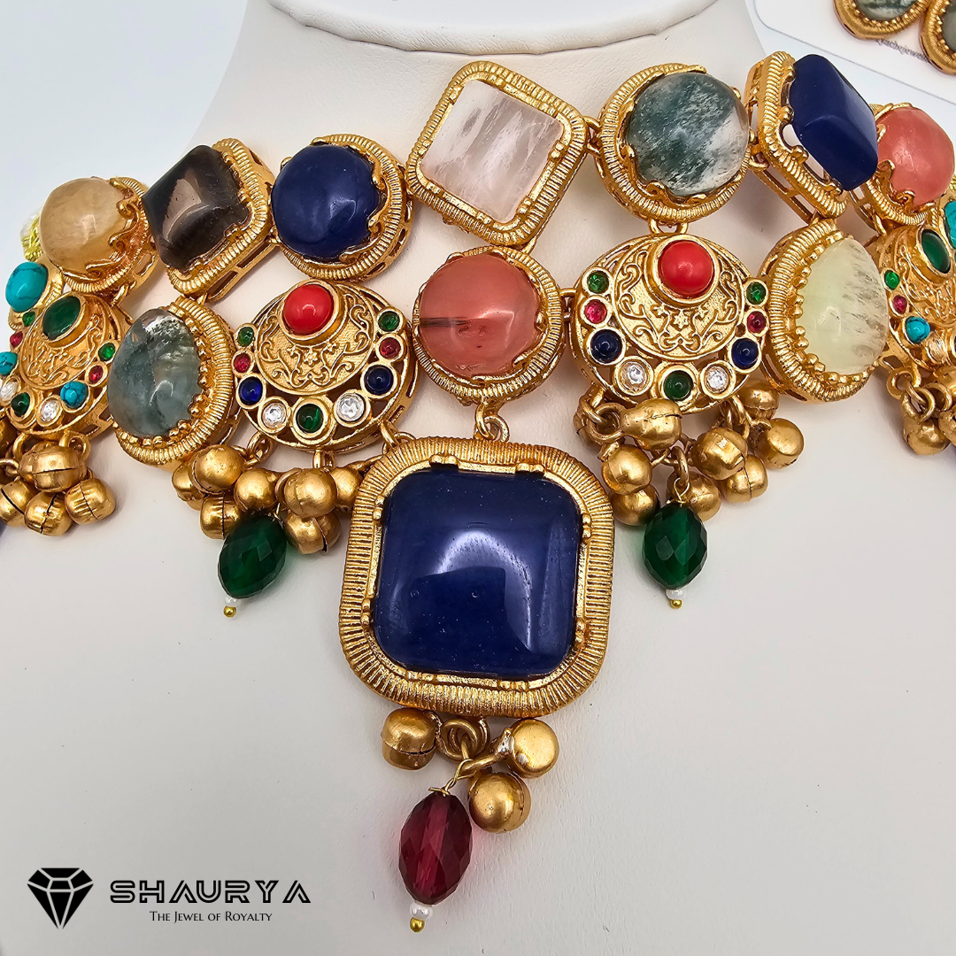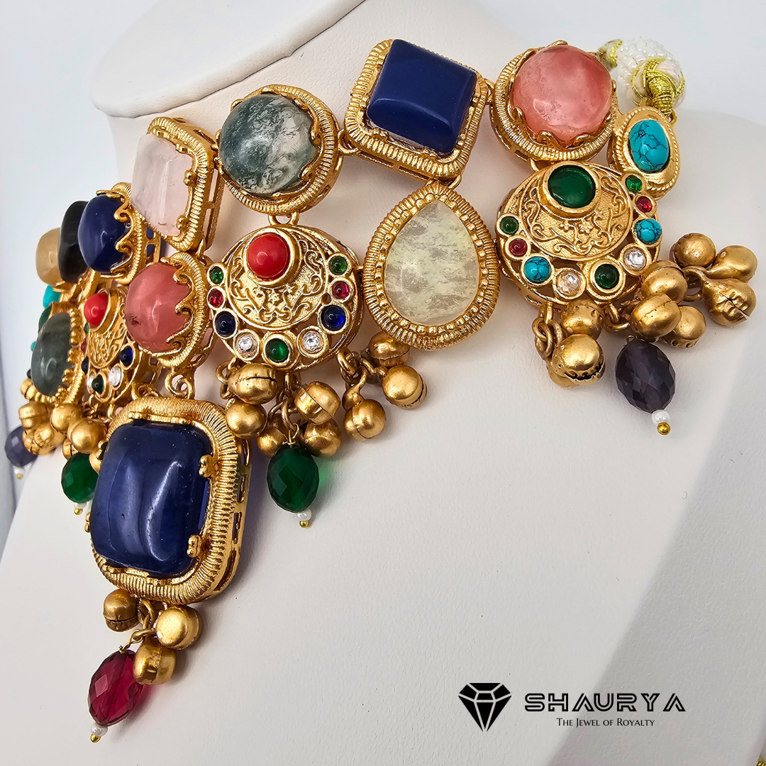 Sabyasachi Inspired Multicolor Stone Choker Necklace Set