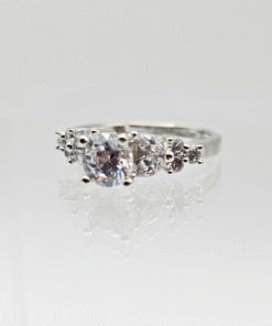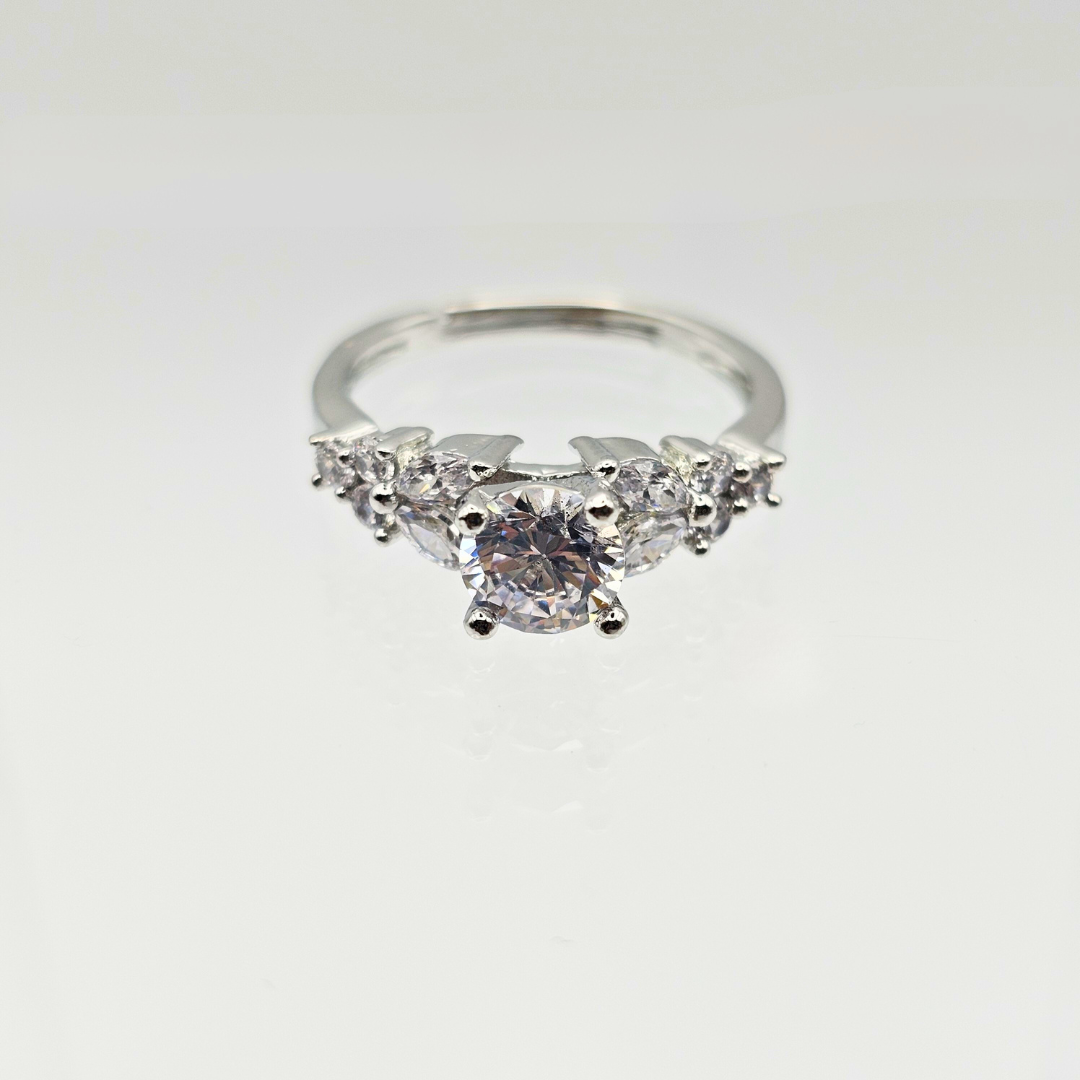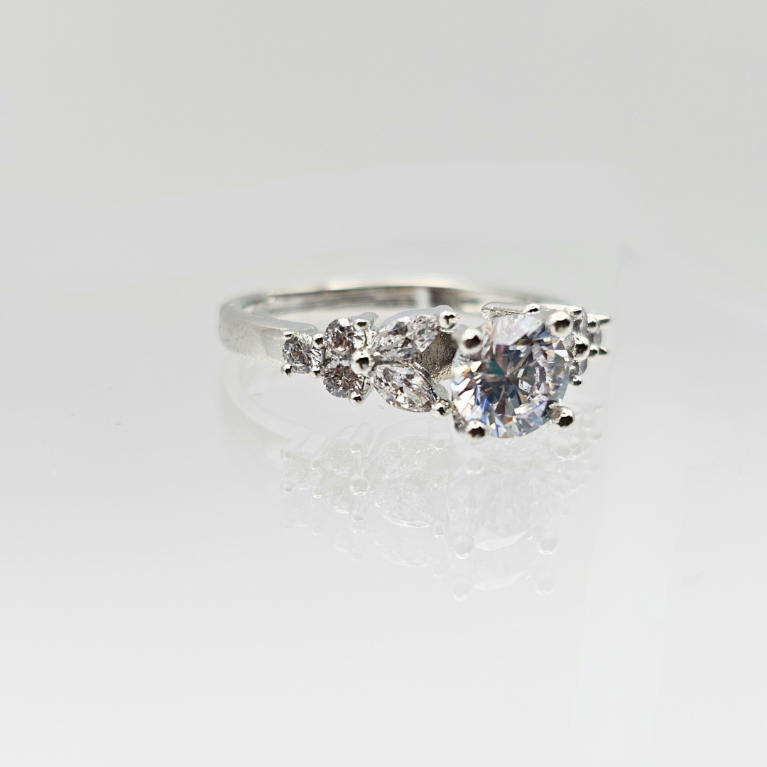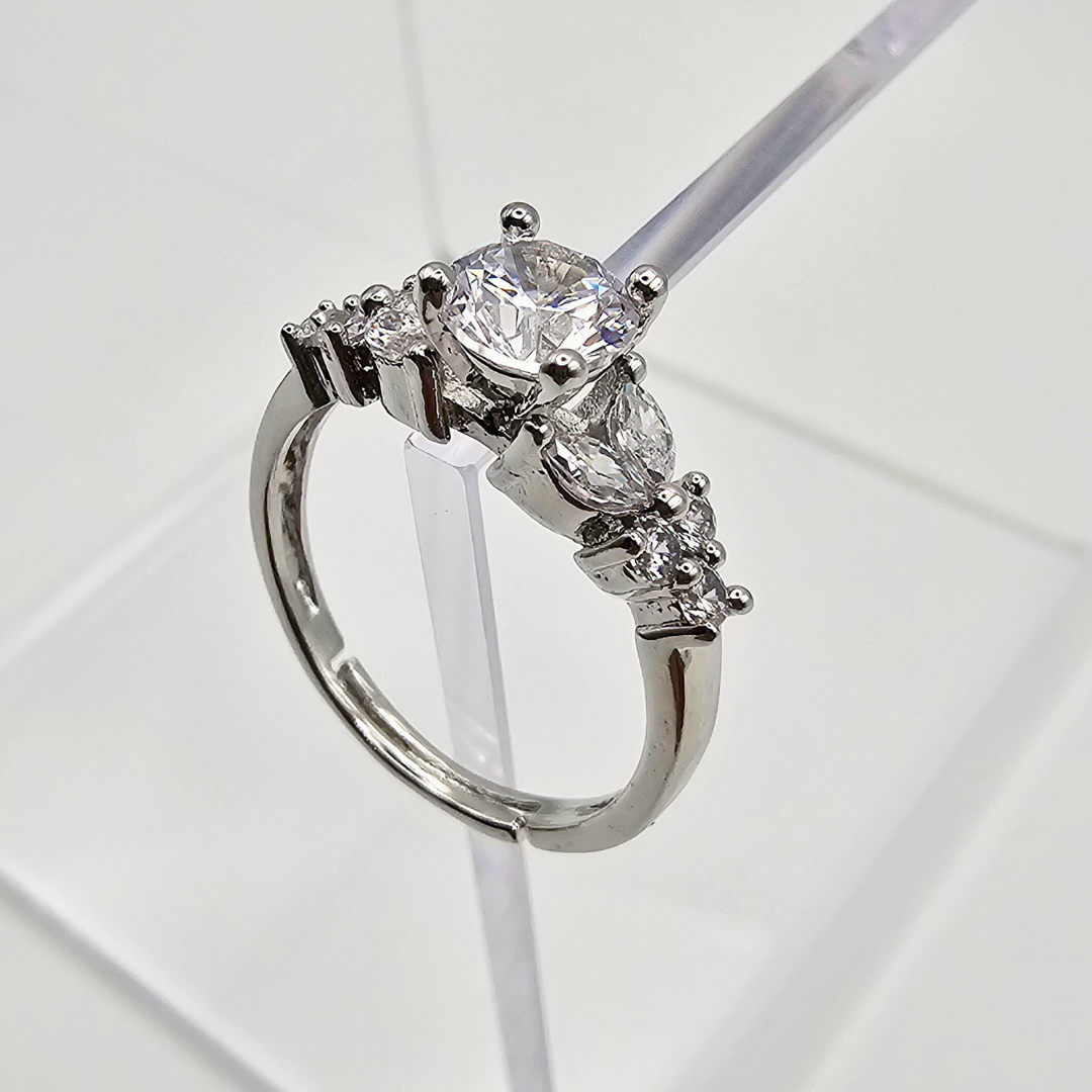 ShineAura Silver Adjustable American Diamond Ring – Size 6.5