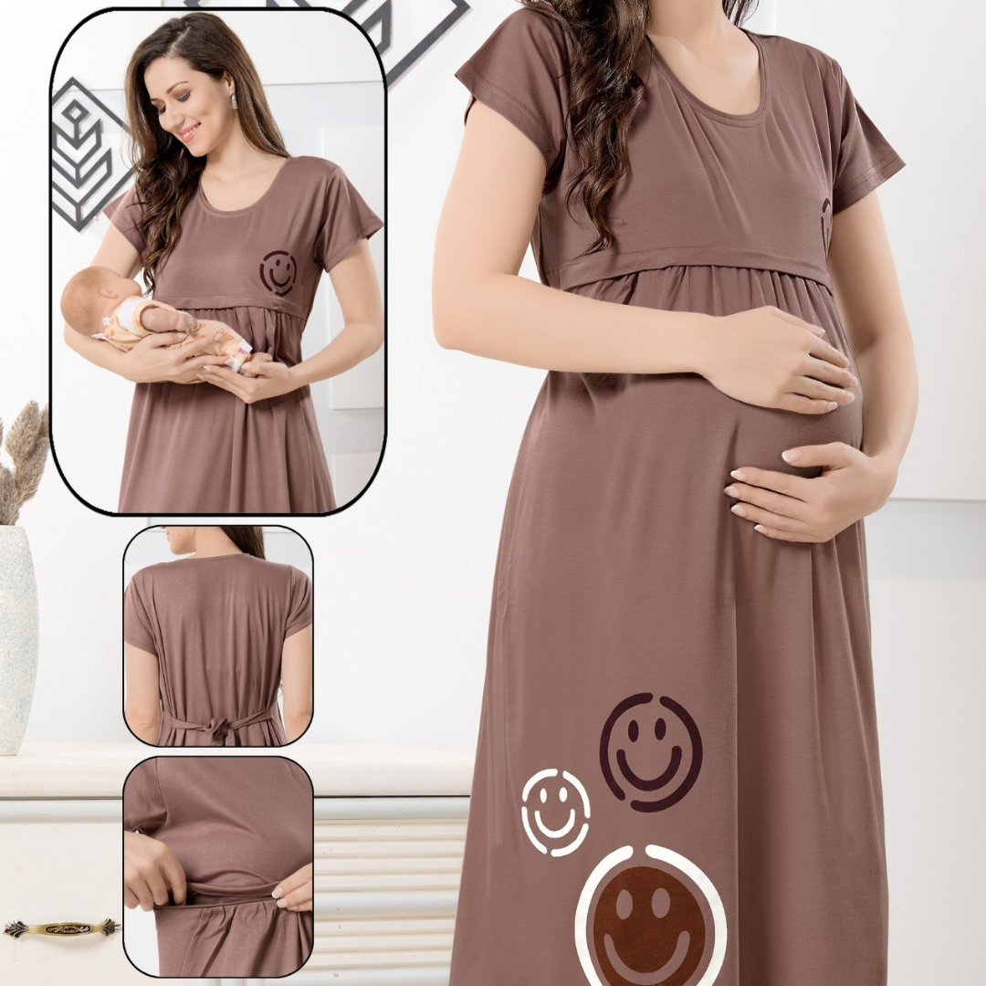Comfortable maternity and feeding night dress made with soft, breathable fabric and easy nursing access. Perfect for pregnancy, postpartum, and nighttime feeding.