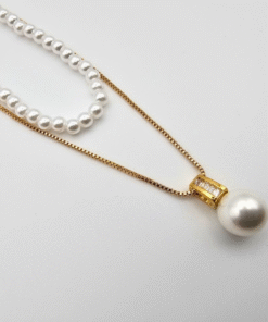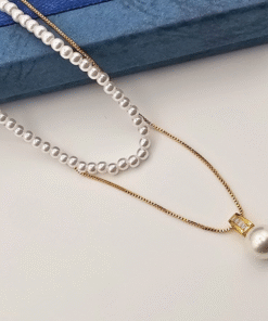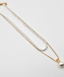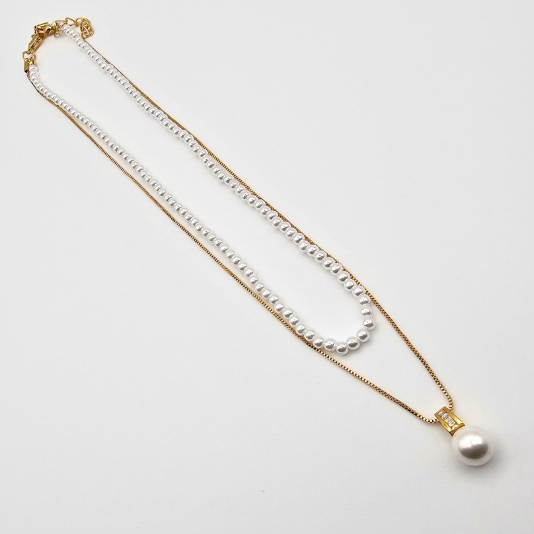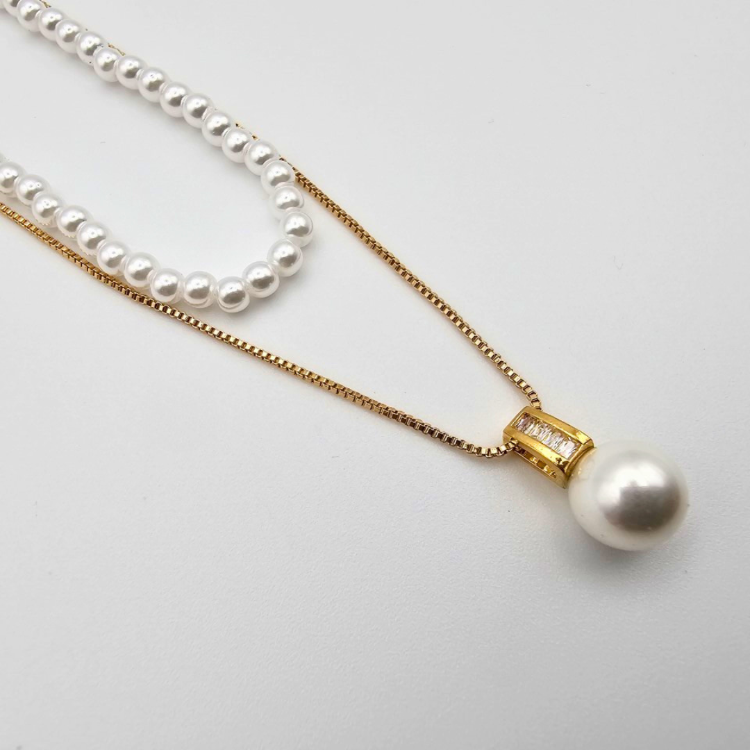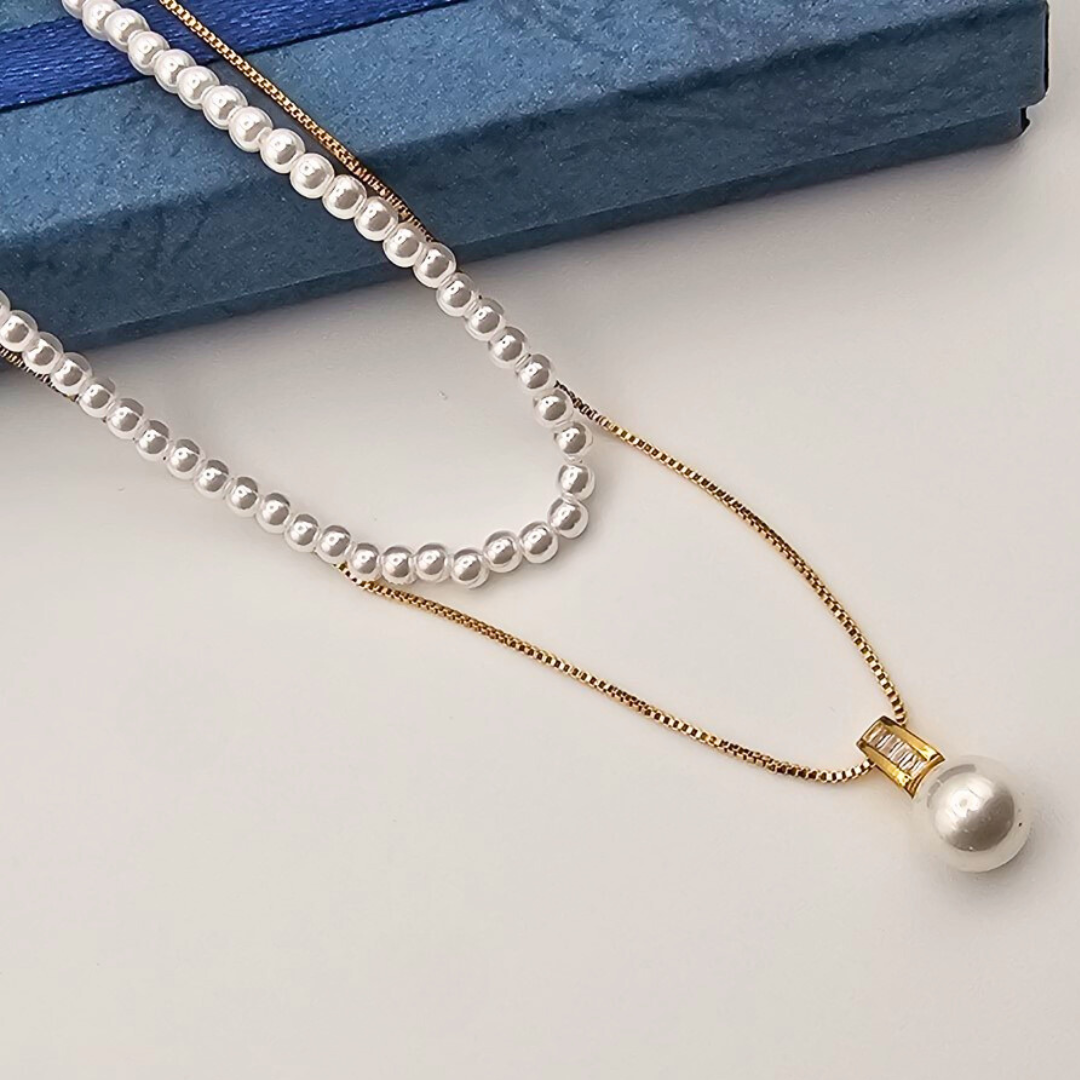 🔗 Dual-chain design: one bold pearl drop, one strand of small pearls