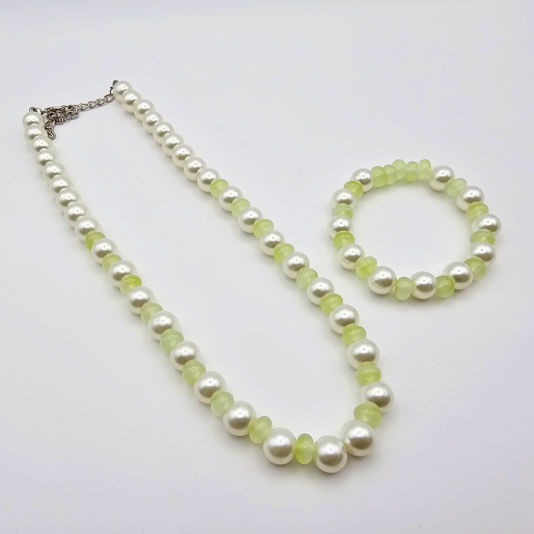 Grace Meets Glamour – White Pearl Necklace with Lime Beads & Matching Bracelet