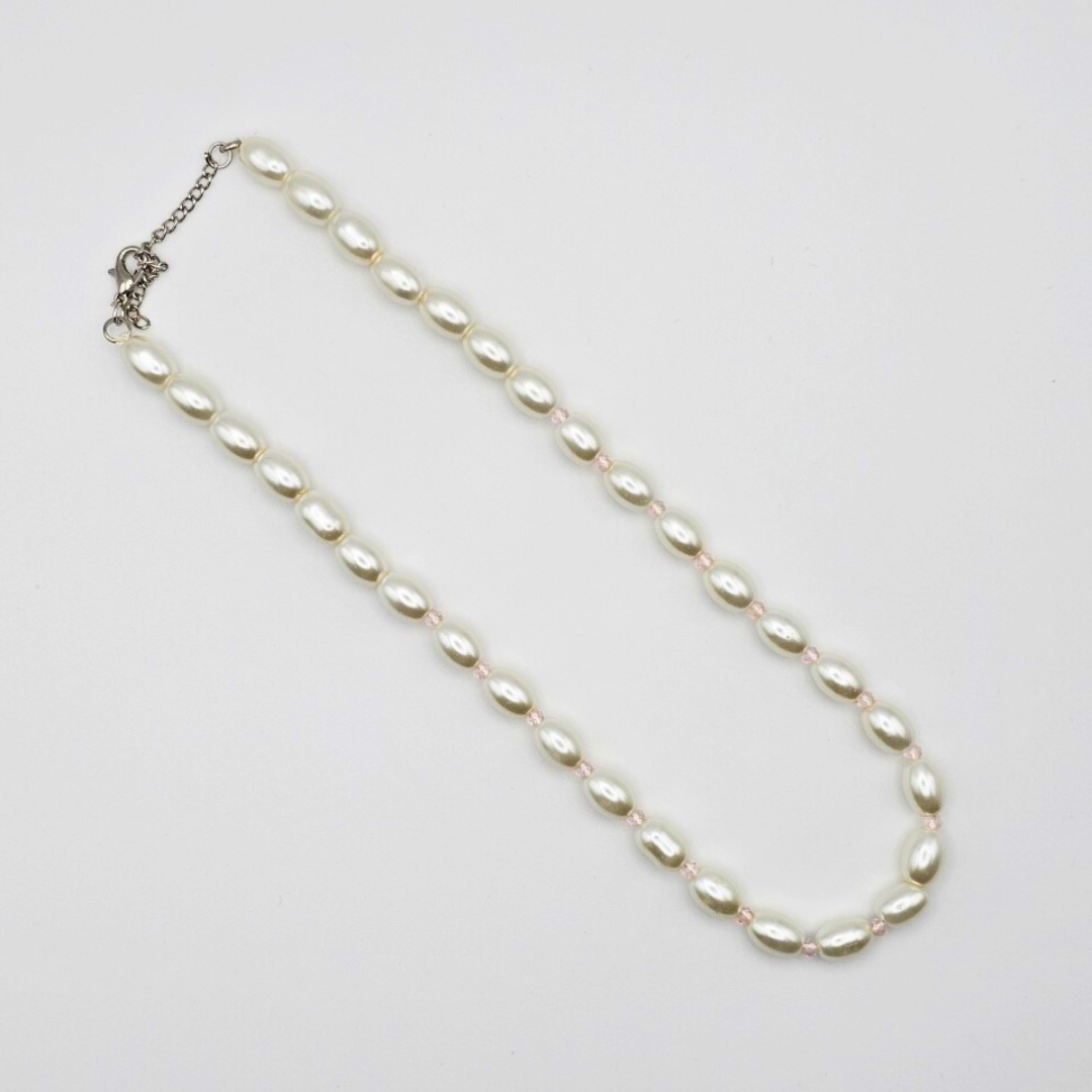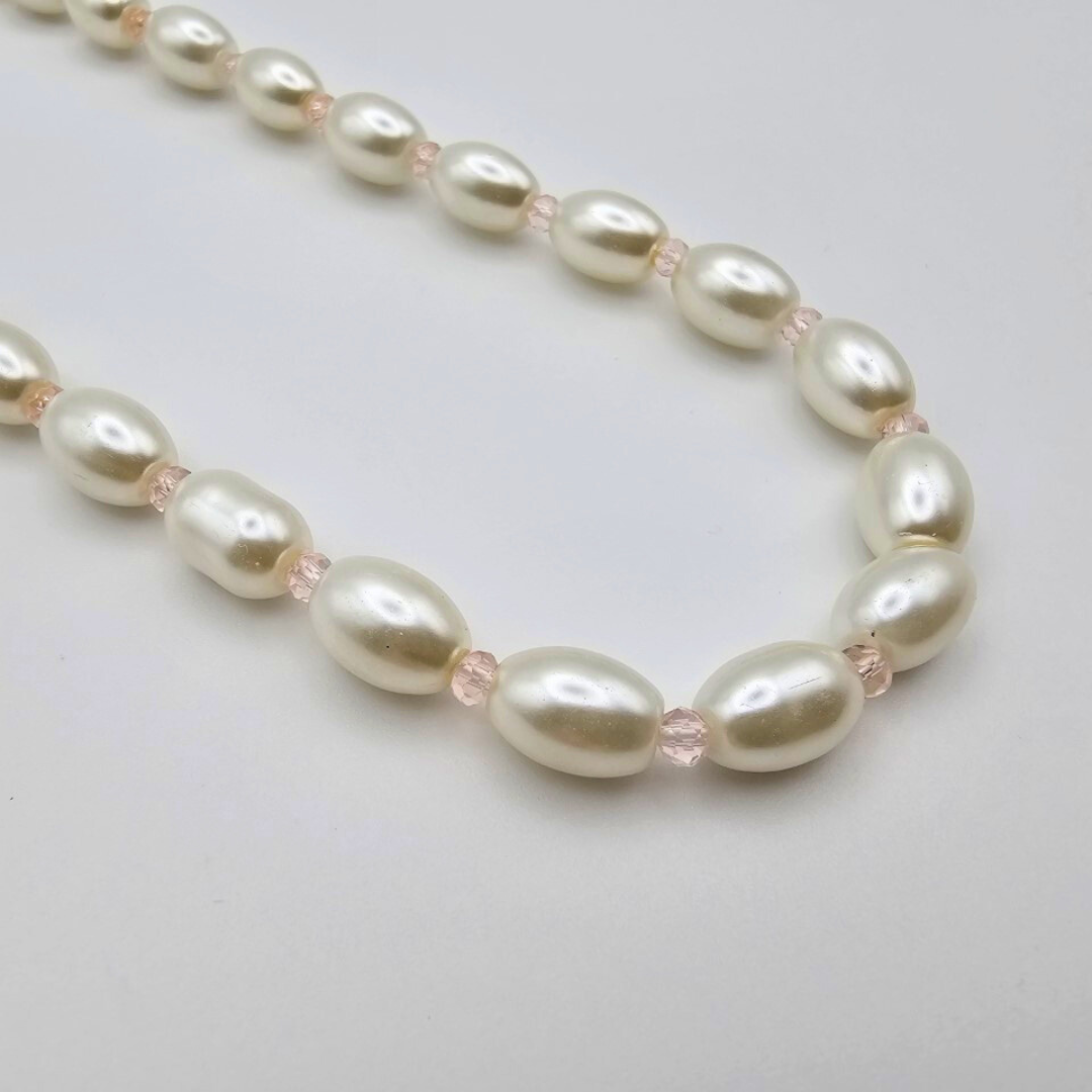 White Pearl Necklace with Black Beads – ~20cm, High Gloss Finish